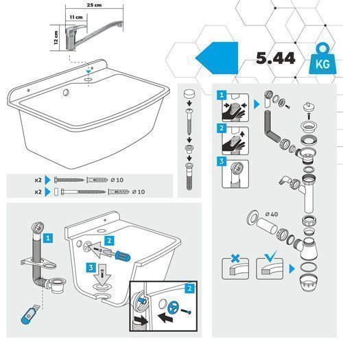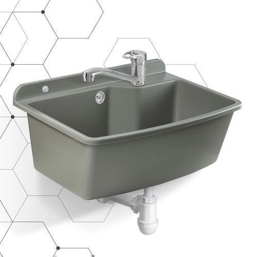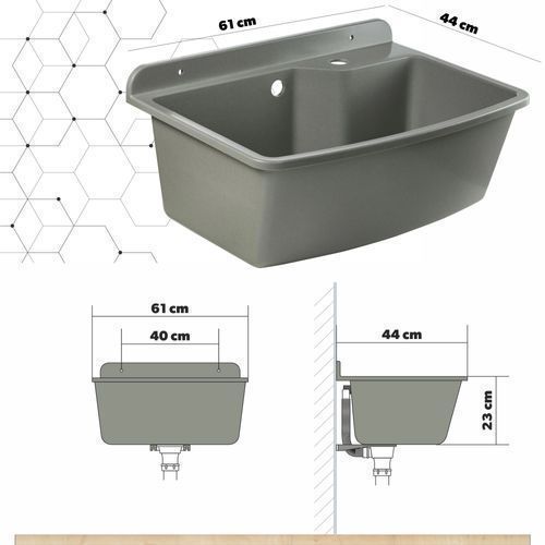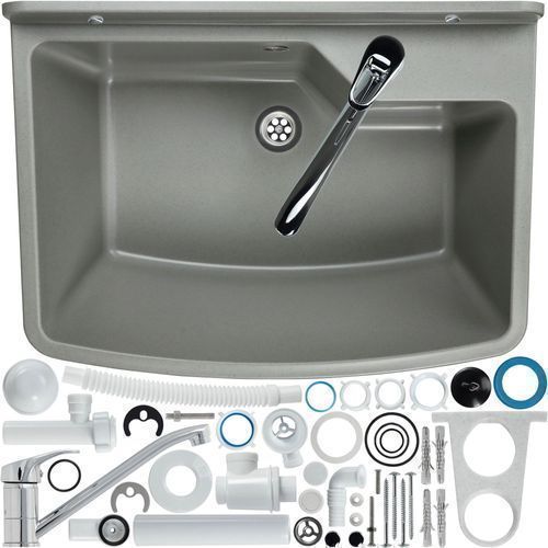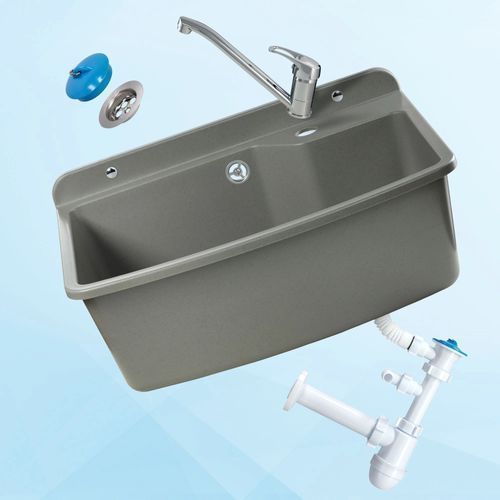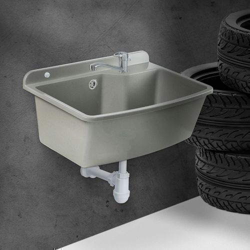 GOSPO Ausgussbecken mit stehende Armatur, Waschbecken 61 cm x 44 cm x 23,5 cm