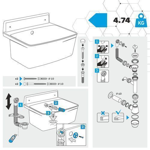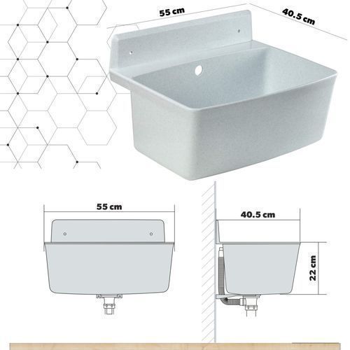 gospo Gartenwaschbecken, 55x42x22.5cm Haushaltsbecken Weiß, Solo