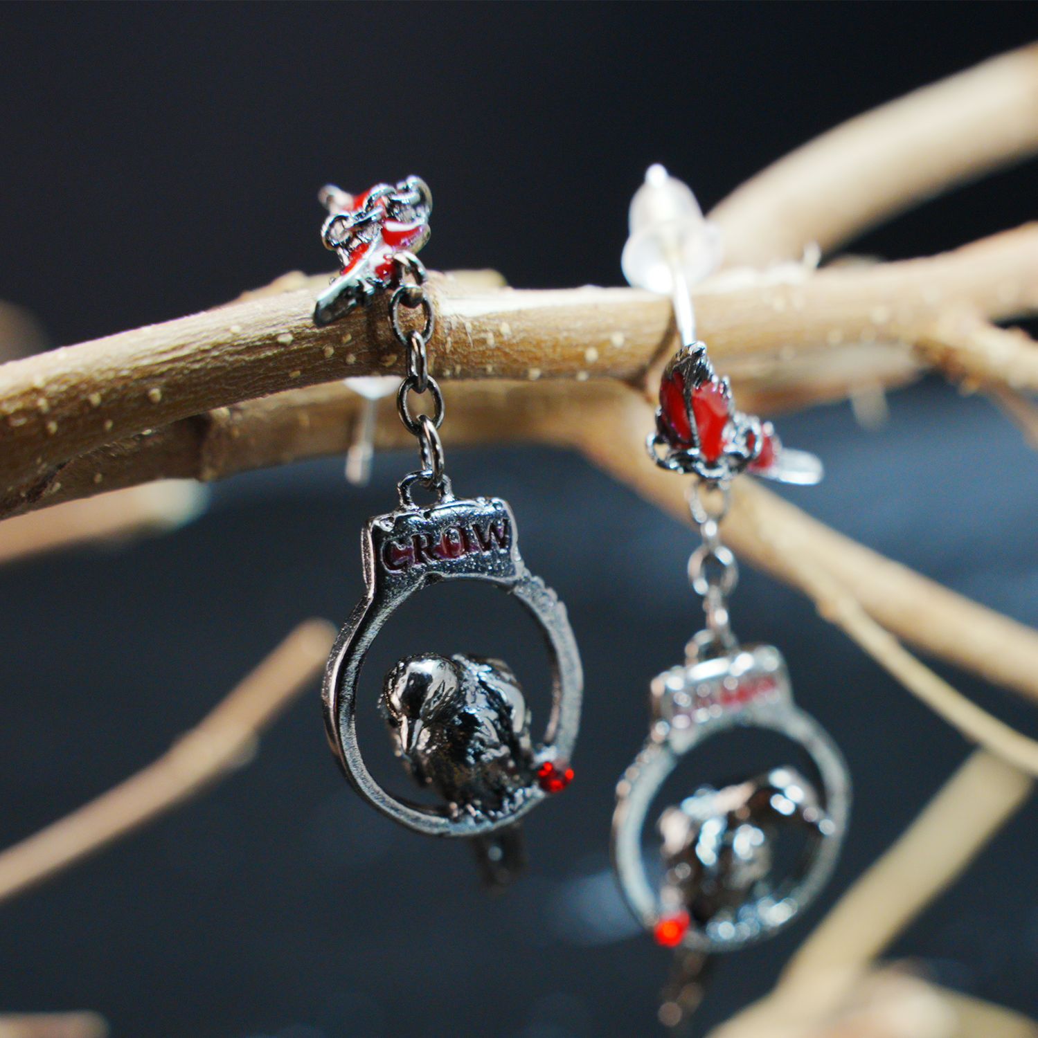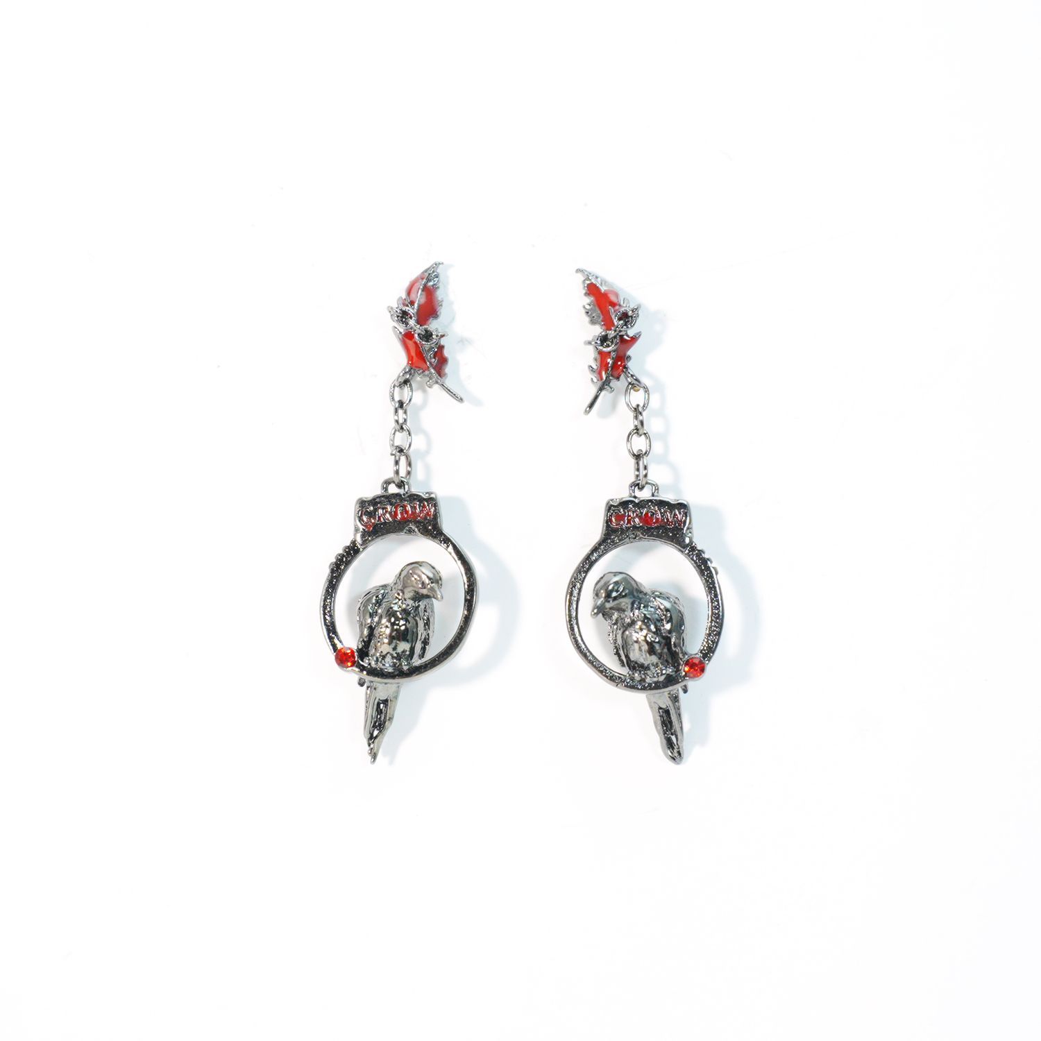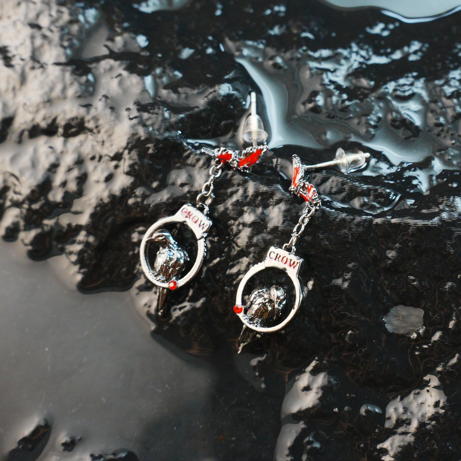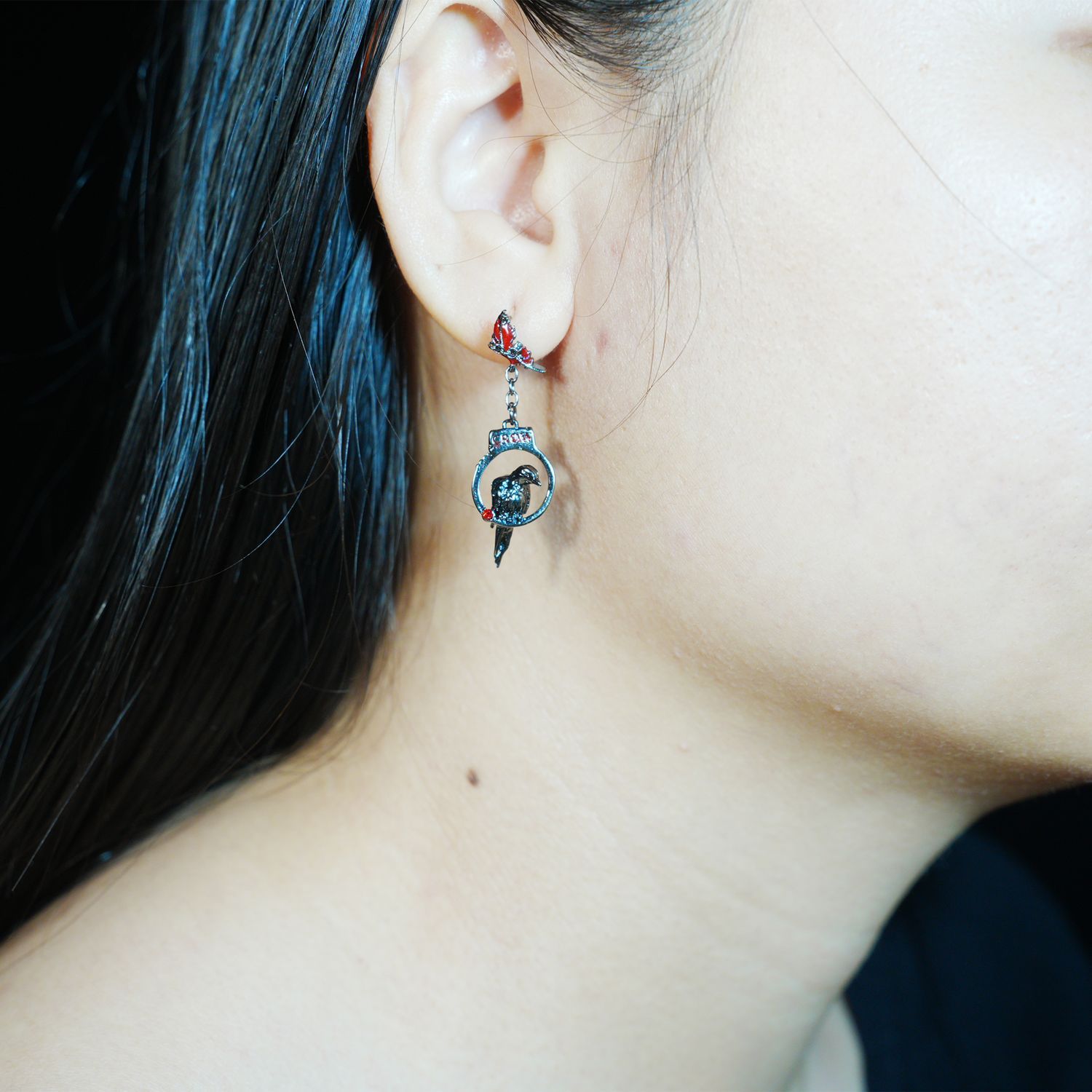 Gothic Raven Drop Earrings with Red Feather Accents | Dark Aesthetic Crow Jewelry | U