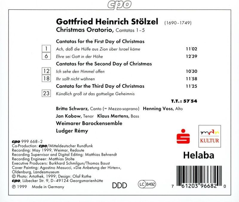 Gottfried Heinrich Stölzel (1690-1749): Weihnachtsoratorium (K
