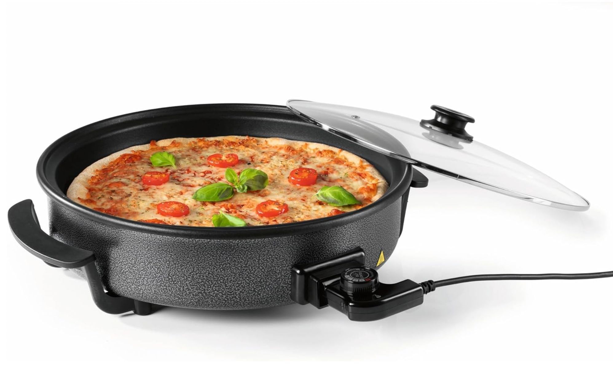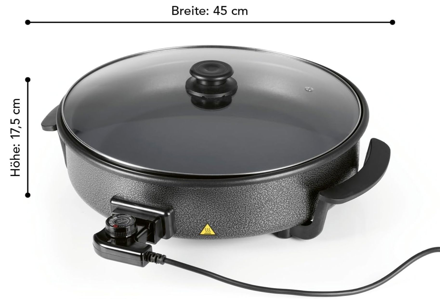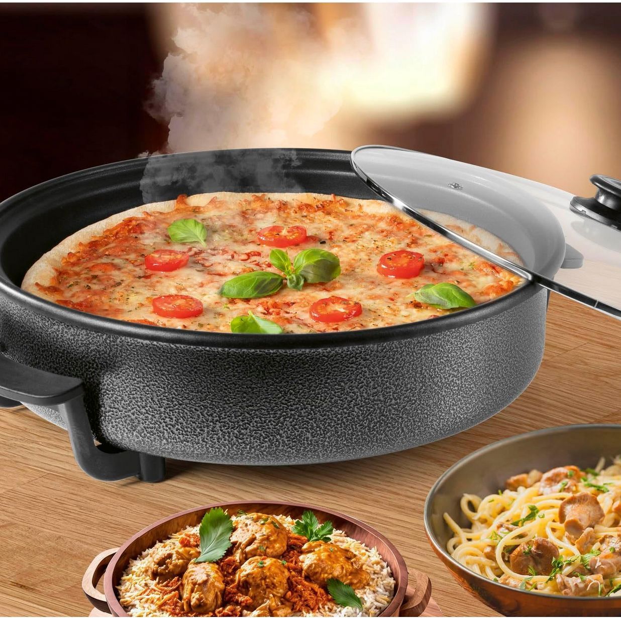 Gourmetmaxx Pizza Party Pfanne elektrisch 1500W schwarz mit Deckel