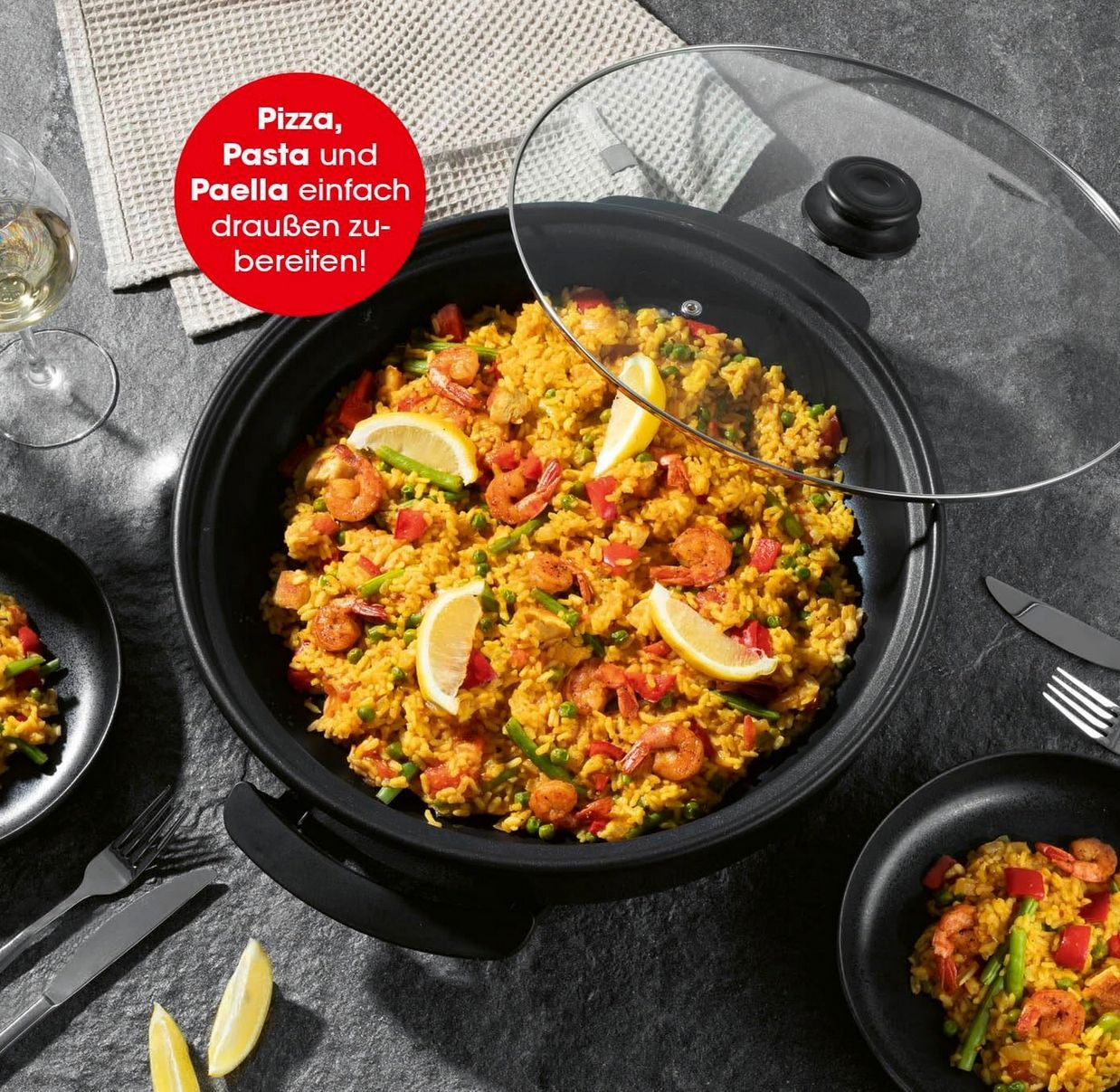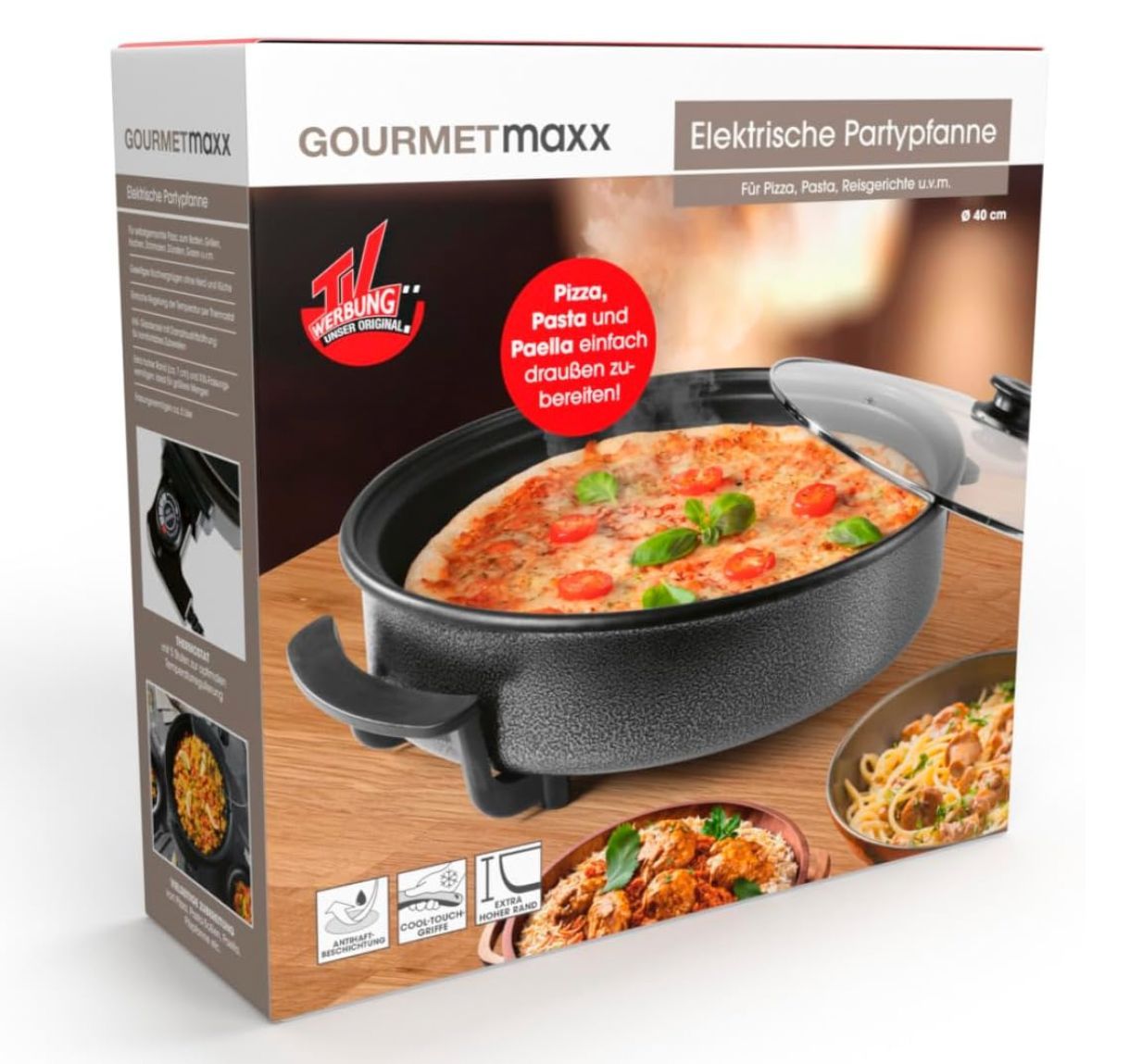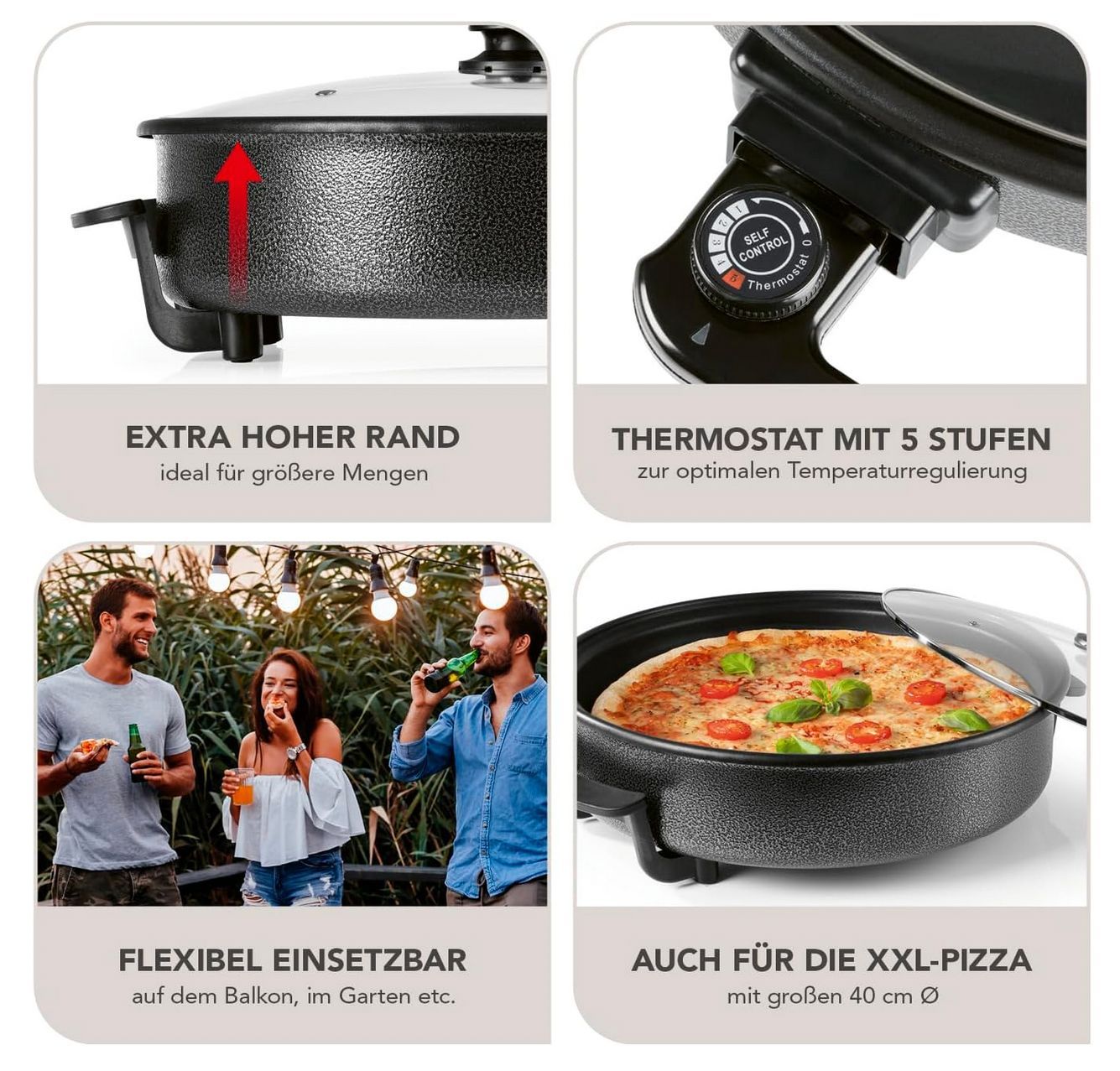 Gourmetmaxx Pizza Party Pfanne elektrisch 1500W schwarz mit Deckel
