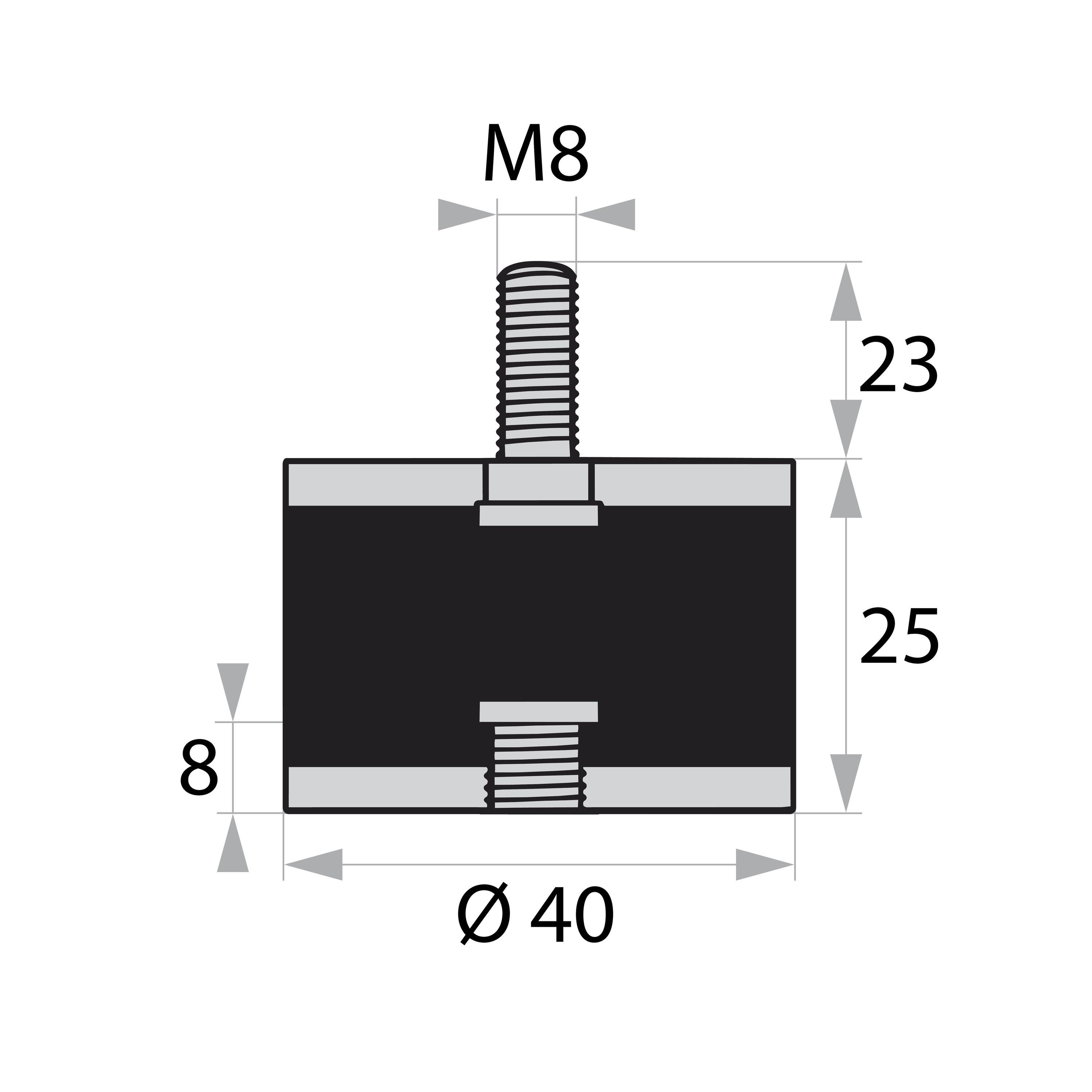 GP2-40-25-AG/IG-M8 x 23/8 Gummi-Metall-Puffer Gummipuffer Schwingungsdämpfer Silentbl