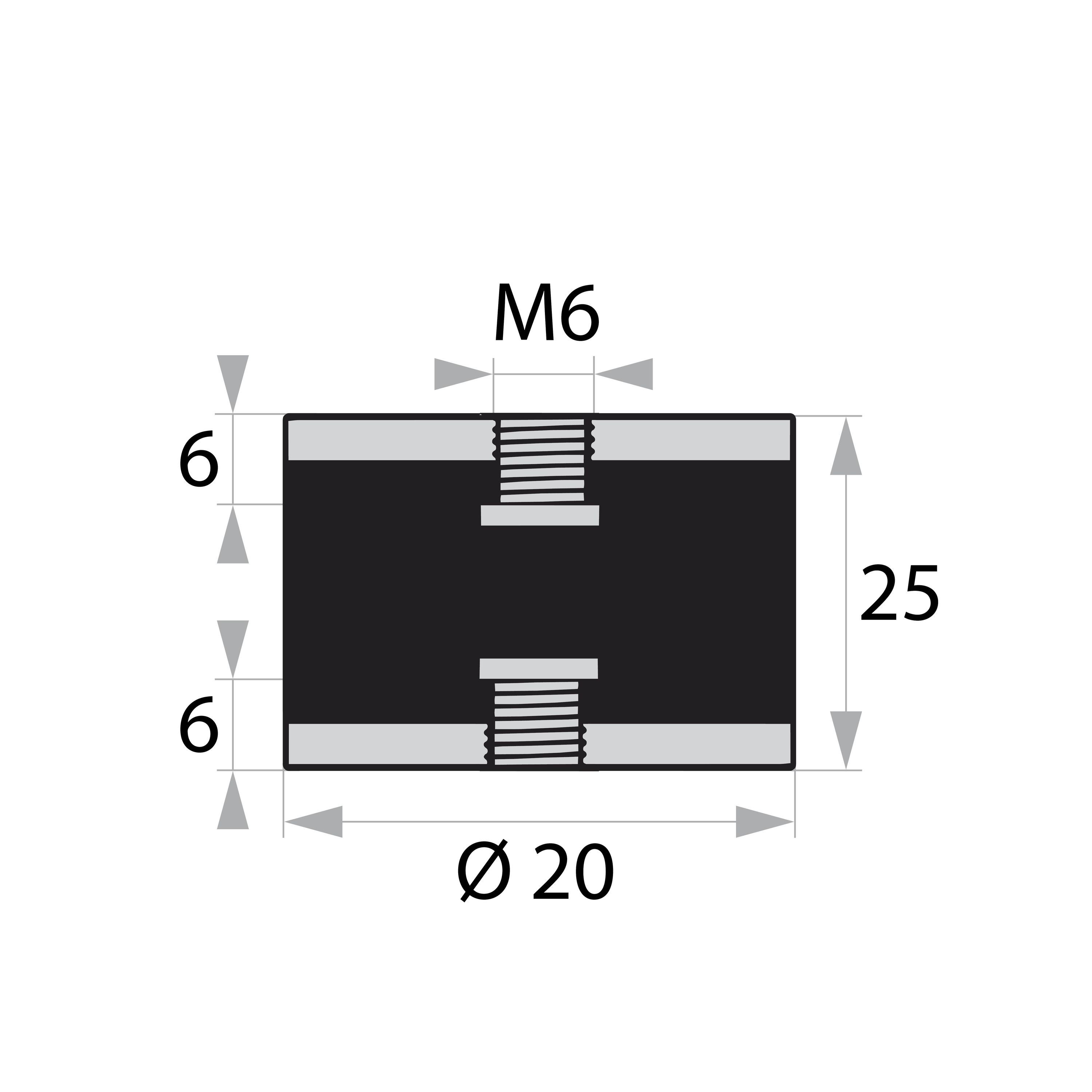 GP3-20-25-IG/IG-M6x6 Gummi-Metall-Puffer Gummipuffer Schwingungsdämpfer Silentblock