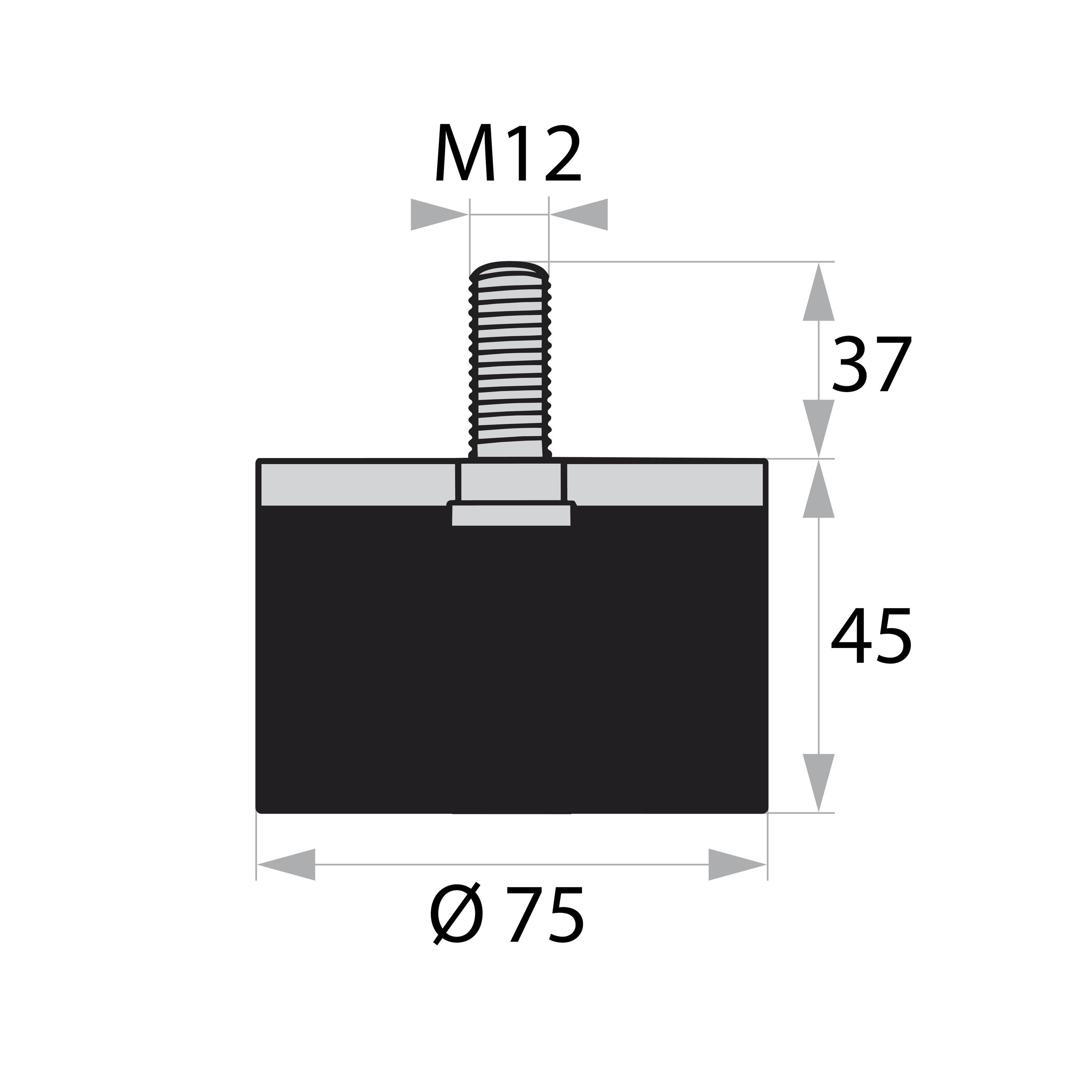 GP4-75-45-AG-M12 x 37 Gummi-Metall-Puffer Gummipuffer Schwingungsdämpfer Silentblock