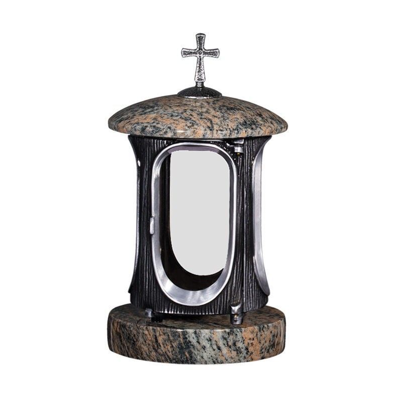Grab-lampe Friedhofslaterne Grab-laterne Granit Gneis + 2 Ersatzgläser