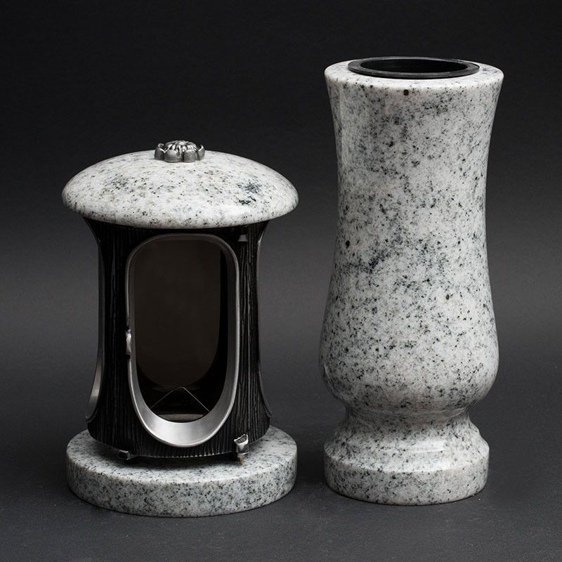 Grab-lampe Grabschmuck Set Grabvase Vase Grablicht Grablampe Granit viscont white