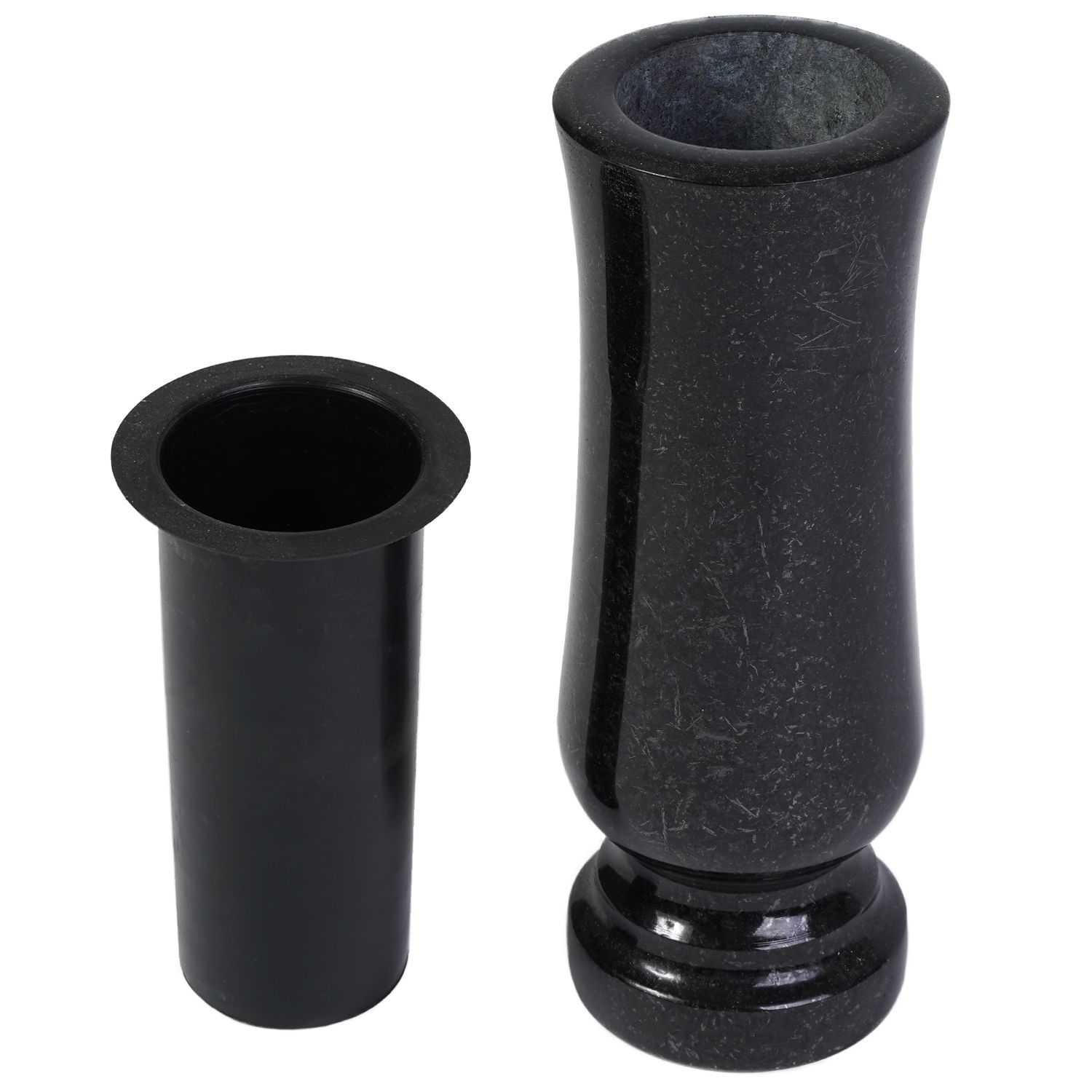 Grab-Vase aus Granit Nero Angola mit Abflussloch