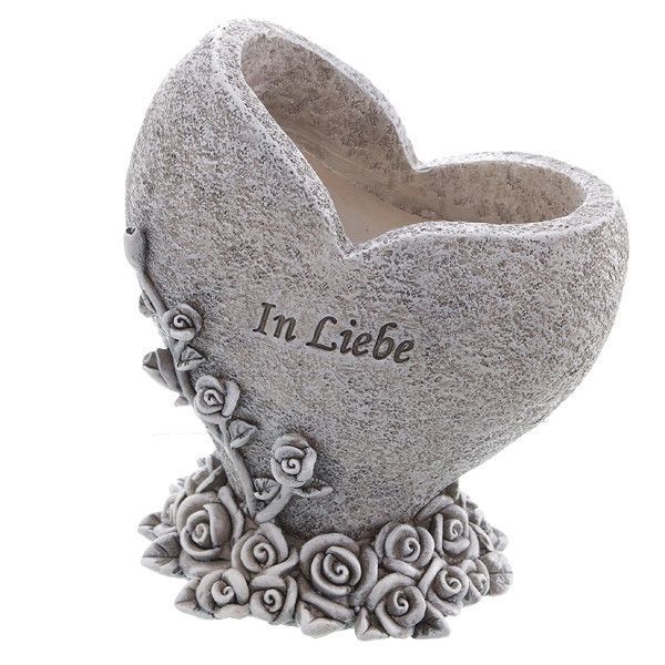 Grabdeko Herz Pflanzgefäß DIO 14cm 80457 Friedhofsdeko Grau In Liebe
