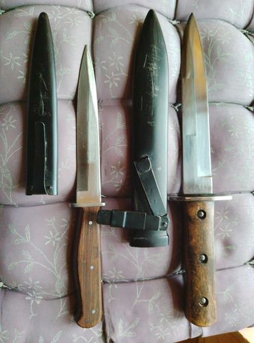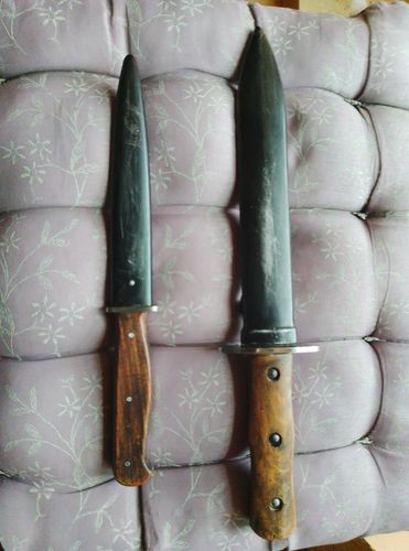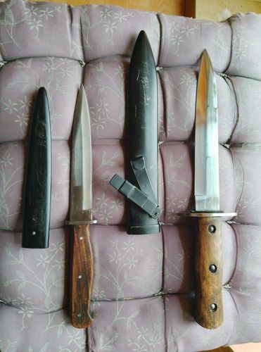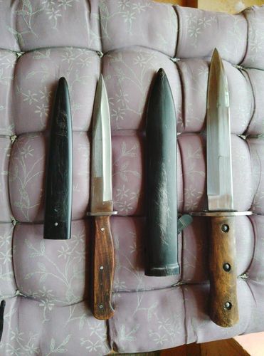 Biete aus Haushaltsauflösung zwei Kampfmesser. Sogenannte Grabendolche. Um welche Dolche es sich handelt kann ich sagen. Das weiß der Sammler sicher besser. Ich würde gern beide zusammen für 150.-Euro verkaufen. Schaut meine anderen Angebote !