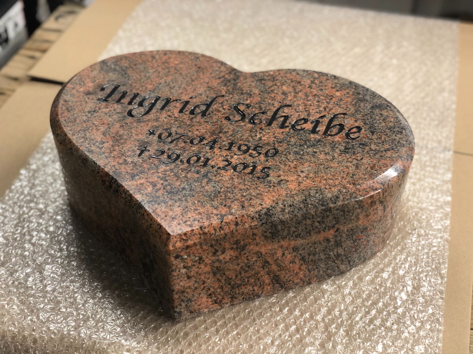 Grabherz 30x40x3 cm inkl. Gravur & Lieferung, Grabstein Urnengrab in Herzform