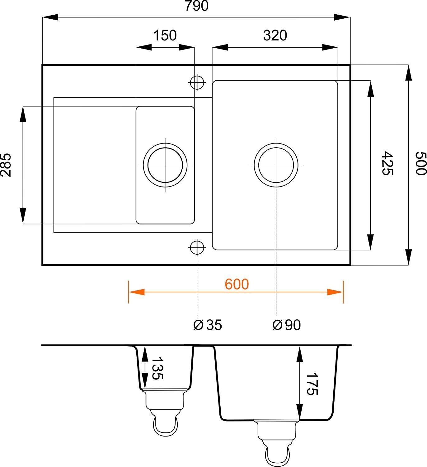 Grabitspül CORDEO 79 mit Siphon 79x50 cm Küchenspüle Einbauspüle Granitspüle Beige