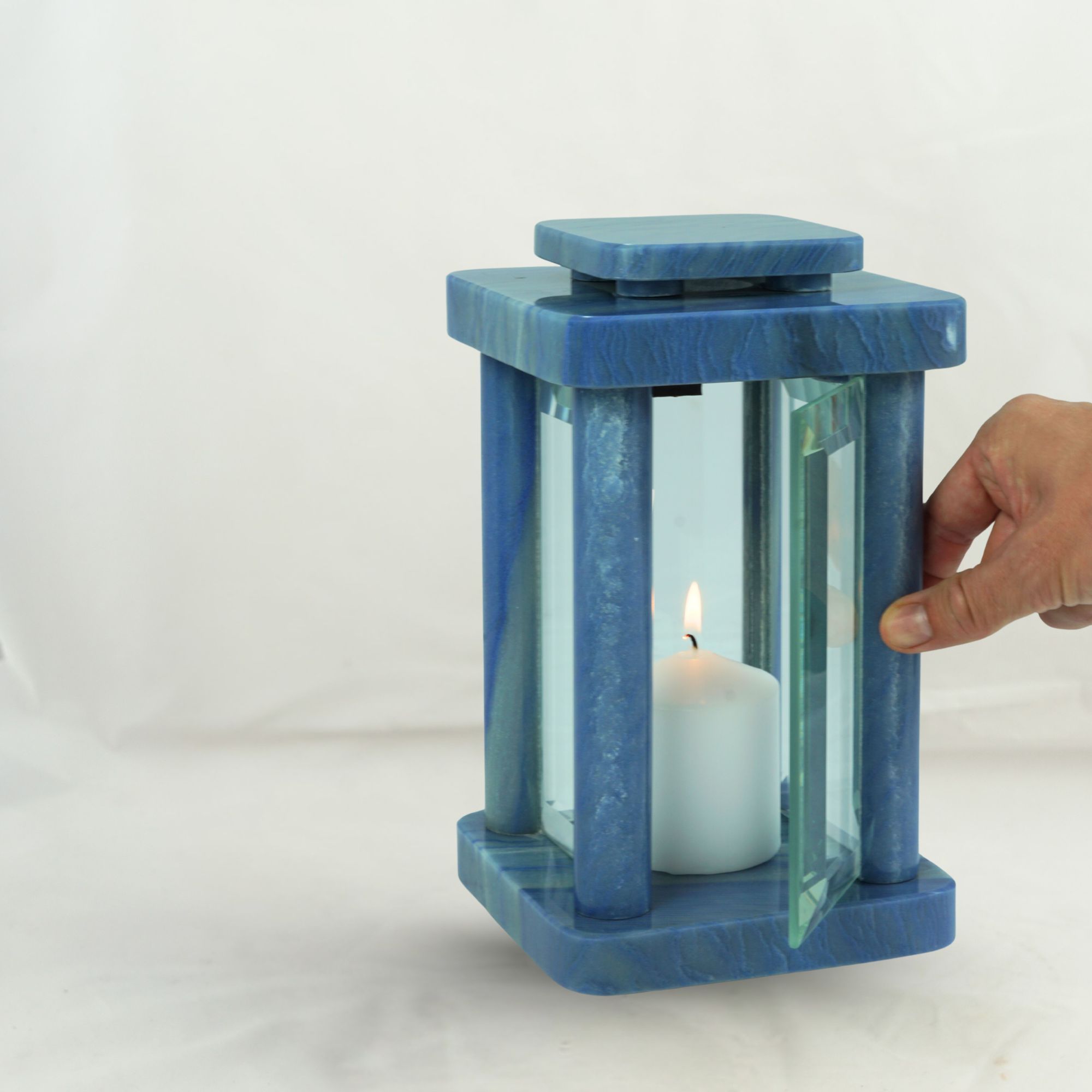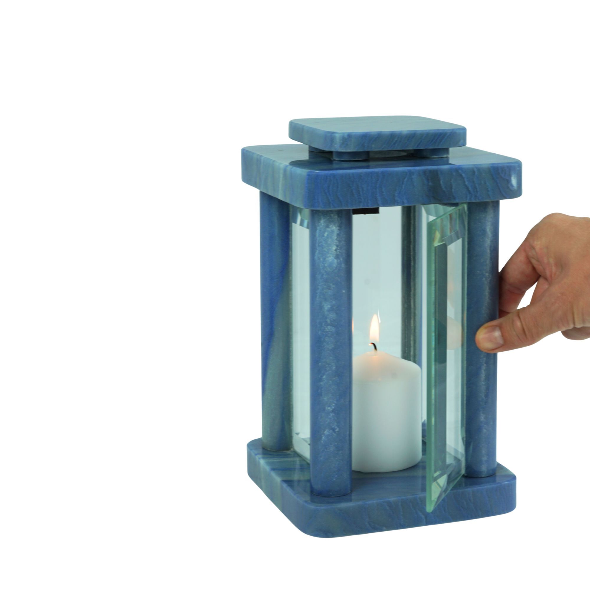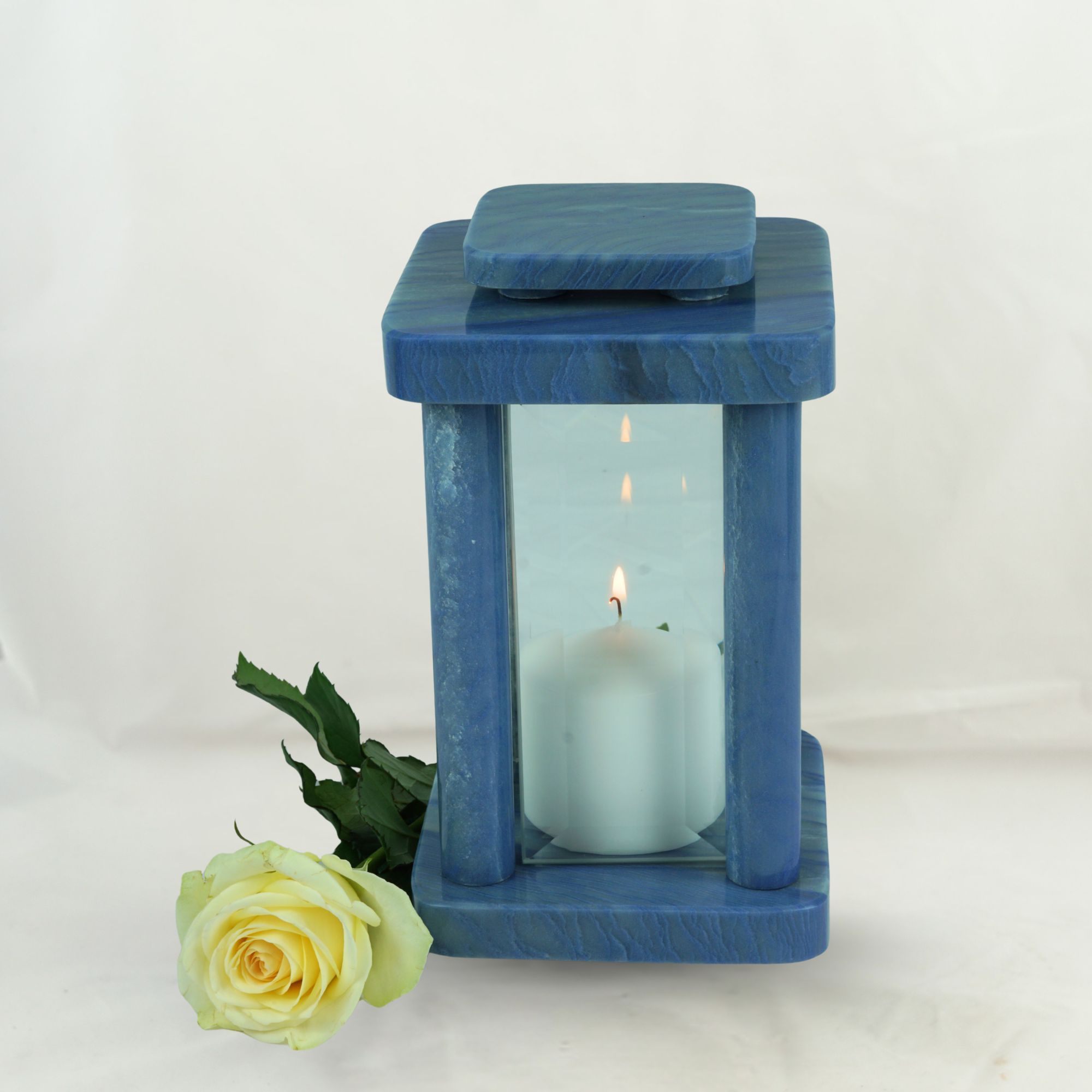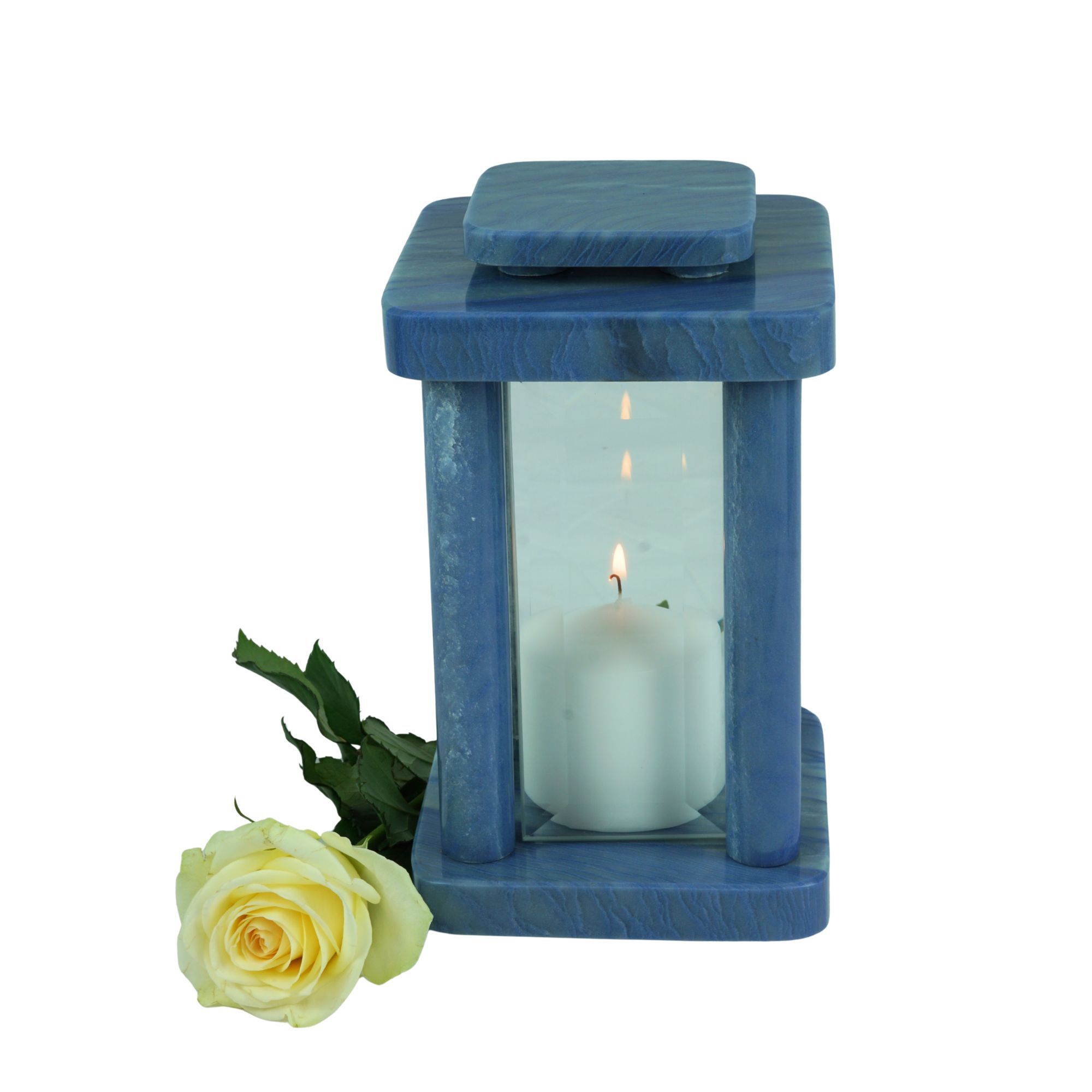 Die Grablampe Design-Modern aus Macaubas Granit ist ein außergewöhnliches Schmuckstück für jede Grabstätte. Mit einer Höhe von 25,5 cm und 14,5 × 14,5 cm Breite Tiefe vereint sie klare Linien mit harmonischen Proportionen. Das sanfte Licht hinter den Glasflächen schafft eine feierliche, ruhige Atmos