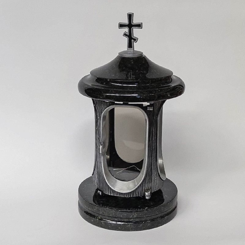 Grablampe Grablaterne mit Orthodoxem Kreuz aus Granit