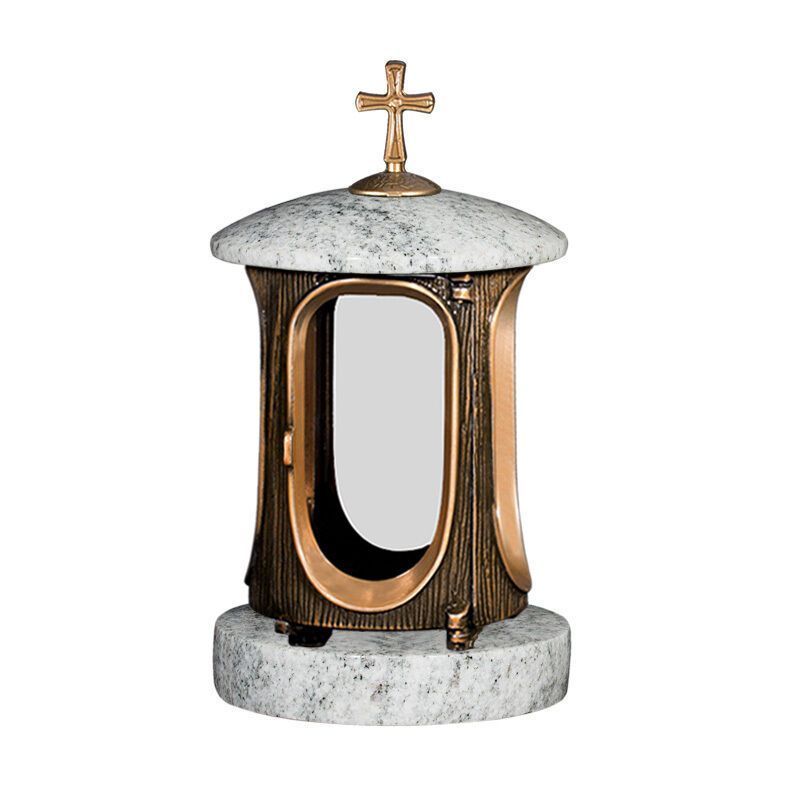 Grablampe Grableuchte Granit Grablicht viscont white mit Kreuz