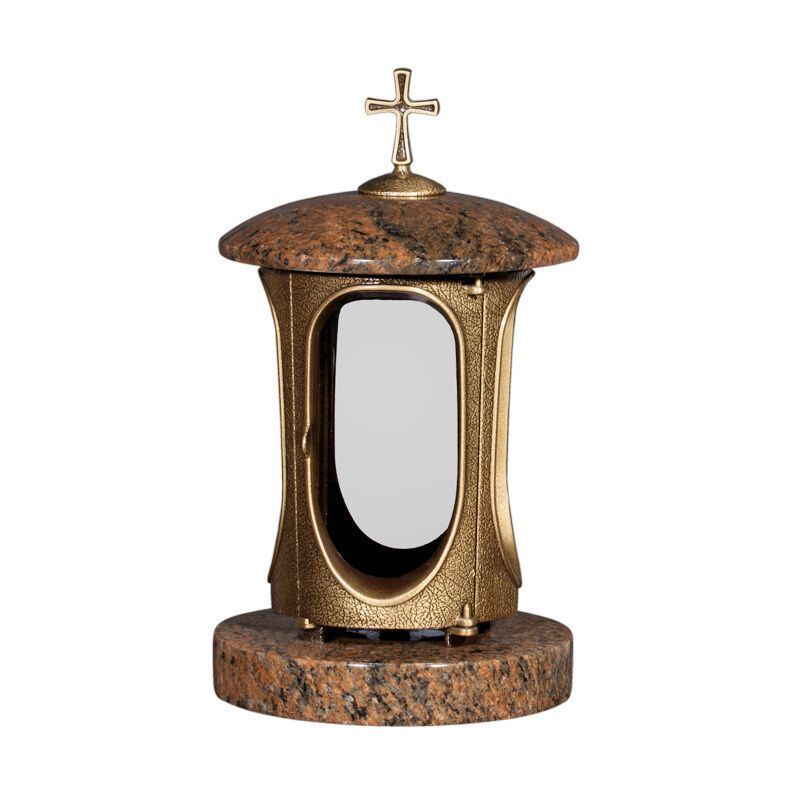 Grablampe Grablicht Grablaterne aus Granit Vanga und Messing Granit Vanga