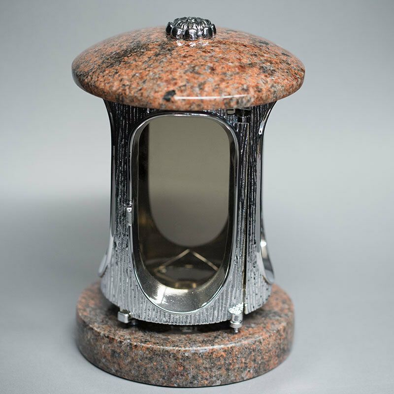 Grablampe Granit Grablicht Grablaterne verchromt Multicolor + 2 Ersatzgläser
