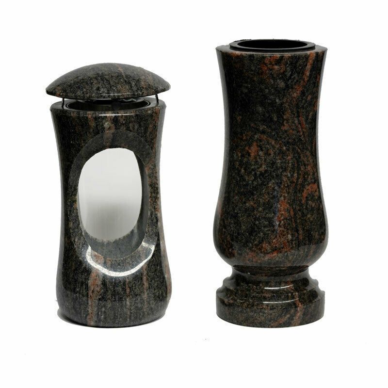 Grablampe Granit Grabschmuck Grablaterne Grabvase Grablaterne Set himalaya