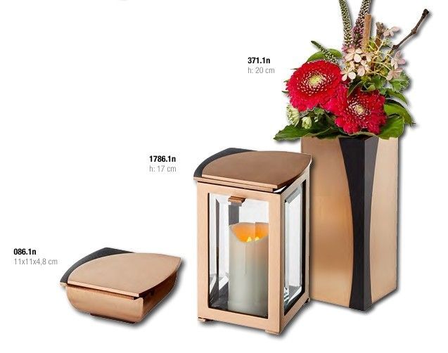 Moderne Grablampe aus Bronze mit schwarzer Verzierung.