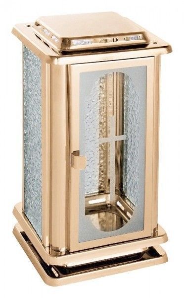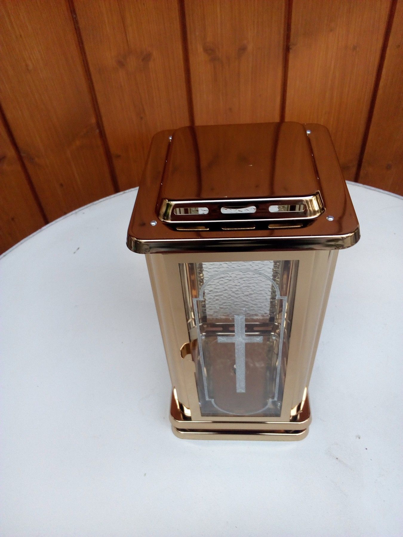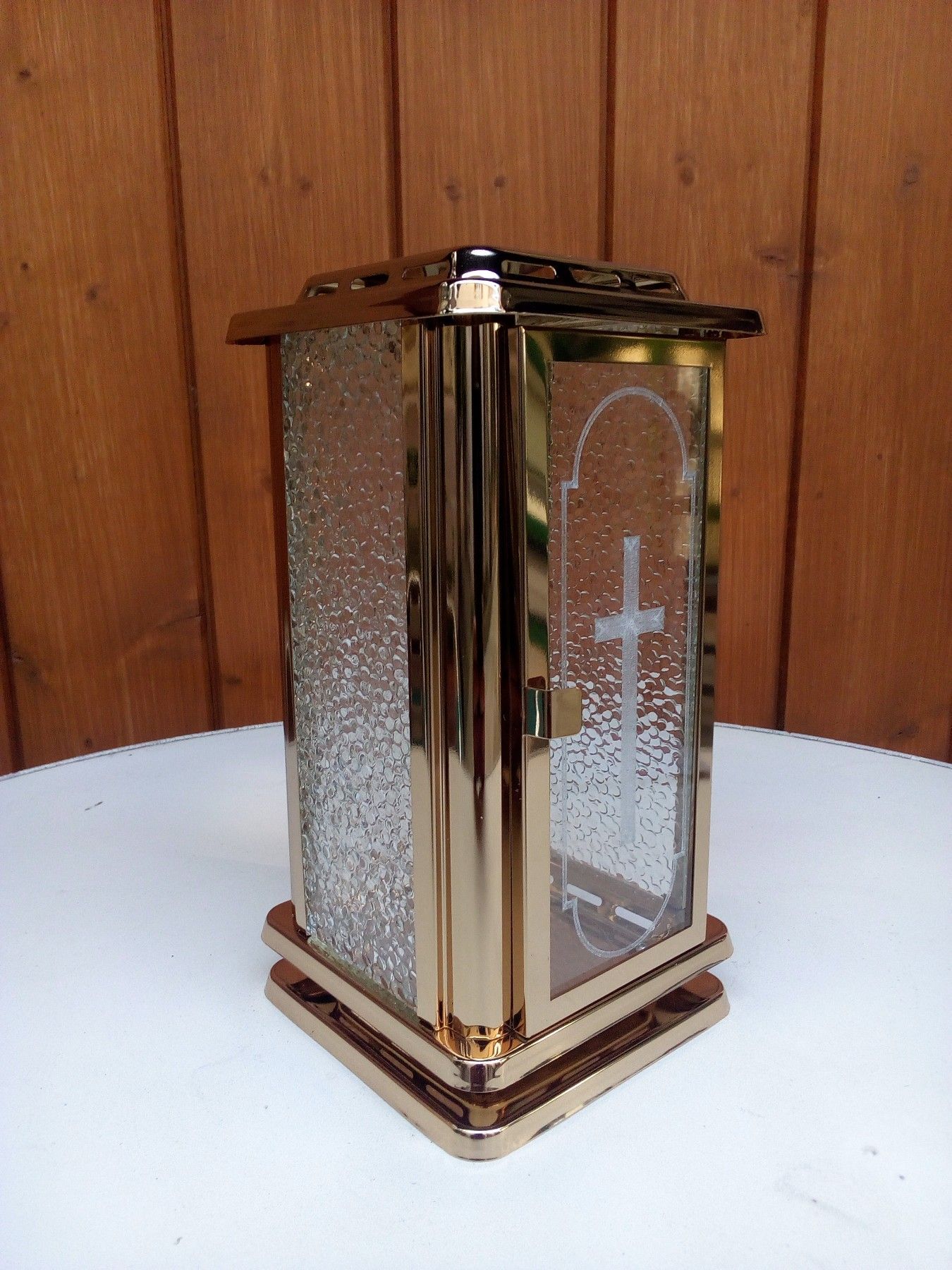 Grablampe mit Kreuz goldfarben Grablaterne Grablicht Grableuchte Grabschmuck