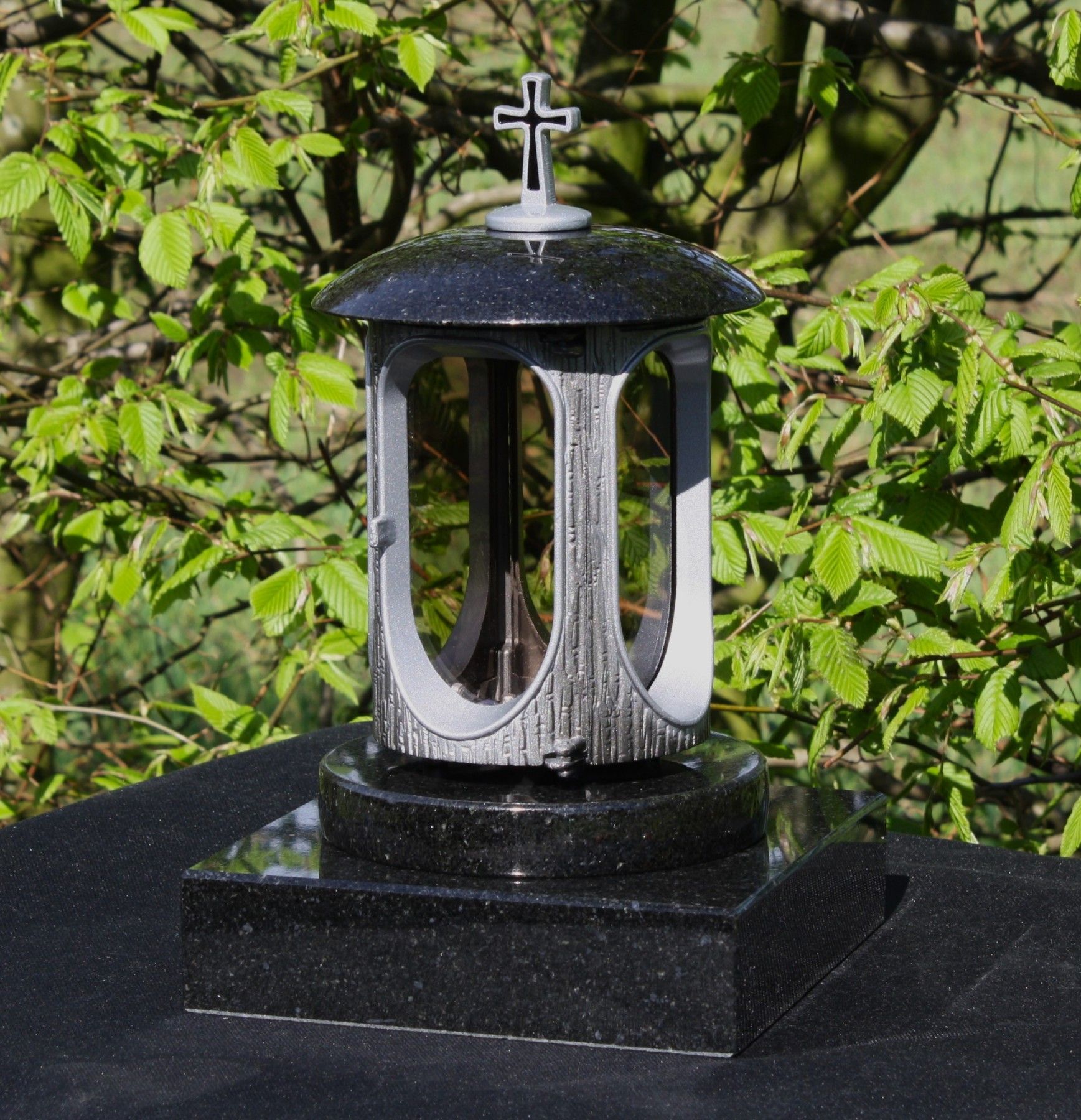 Grablaterne auf Granitsockel Grablicht Grab Lampe Licht Leuchte Grabschmuck