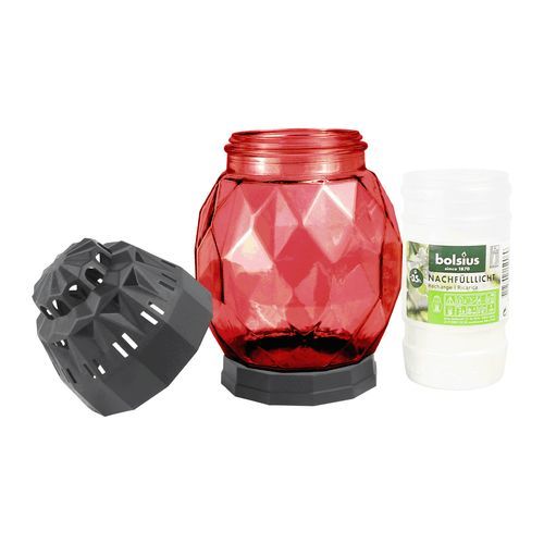 Grablaterne aus Glas „Diamond“ mit Nachfüller, Rot, Bolsius, 108/178 mm, Grabsch