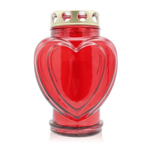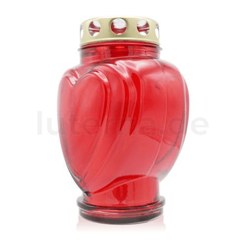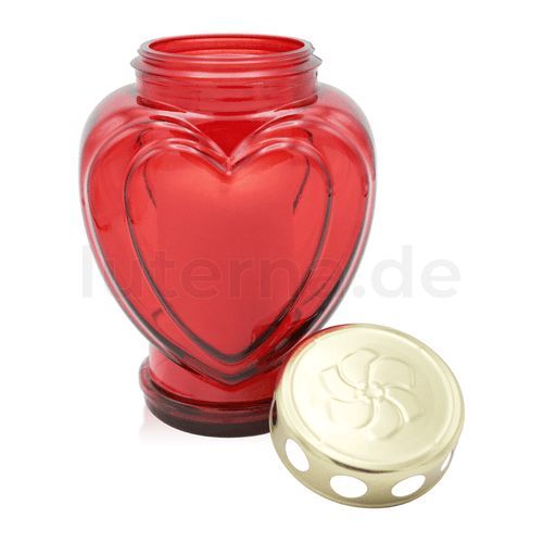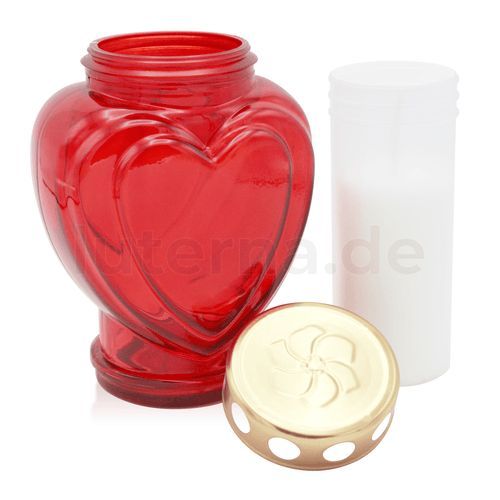 Grablaterne aus Glas mit Nachfüller, "Herzform", rot, Grabschmuck, Grabdekoratio