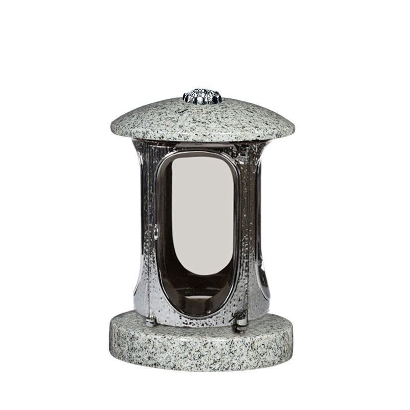 Grablaterne Grablampe Grabschmuck verchromt Granit grau