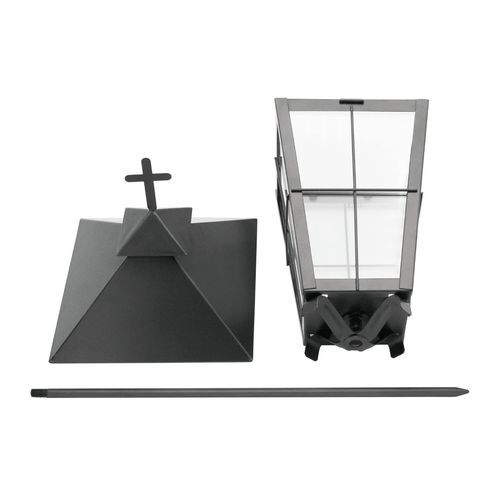 Grablaterne mit Kreuz aus Metall, mit Erdspieß, Grabschmuck, Grabdekoration