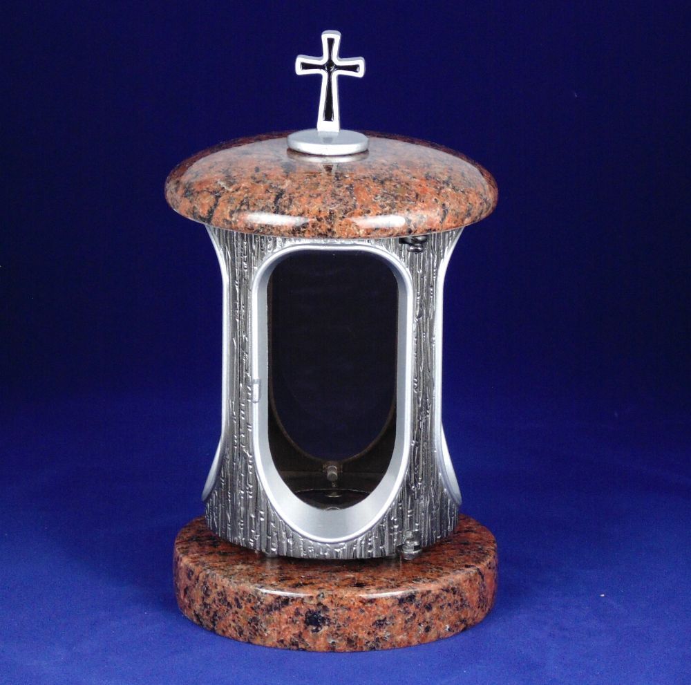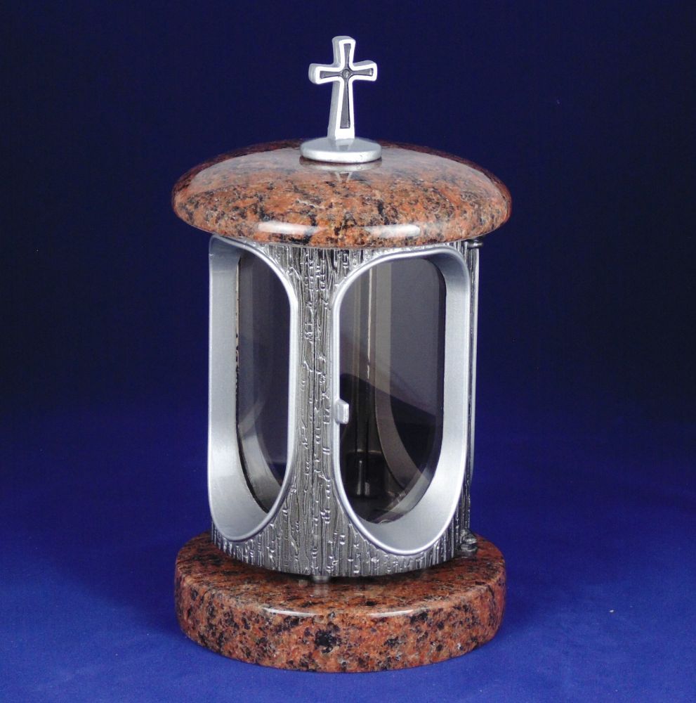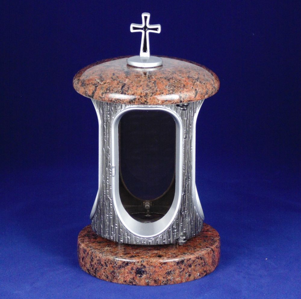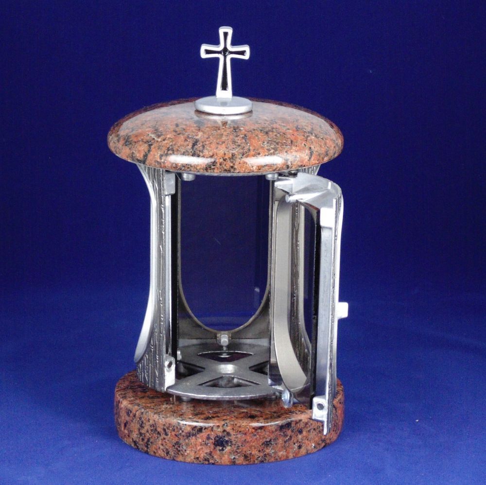 Grablaterne mit Kreuz Grablicht Grableuchte Grabschmuck aus Vanga Granit