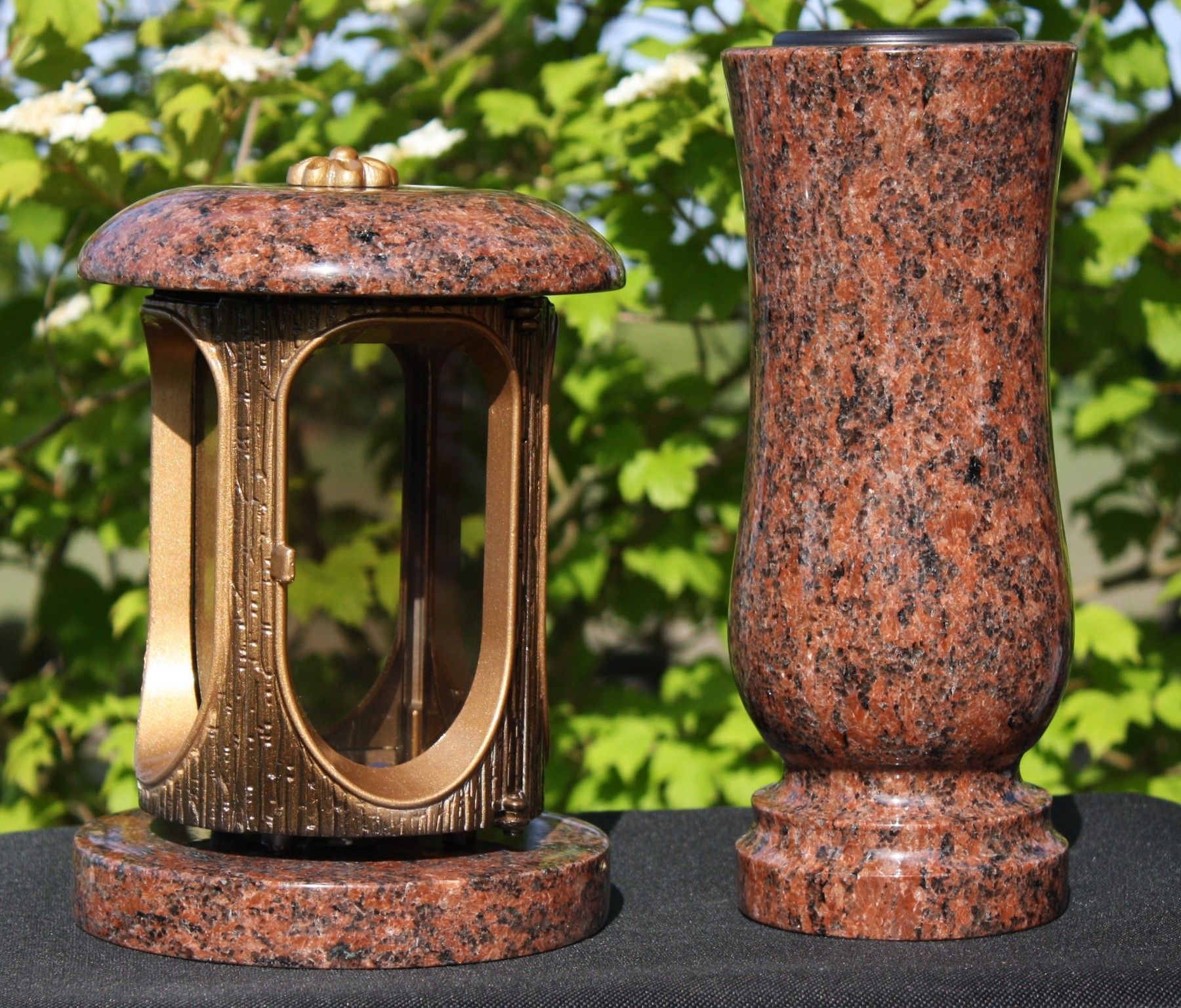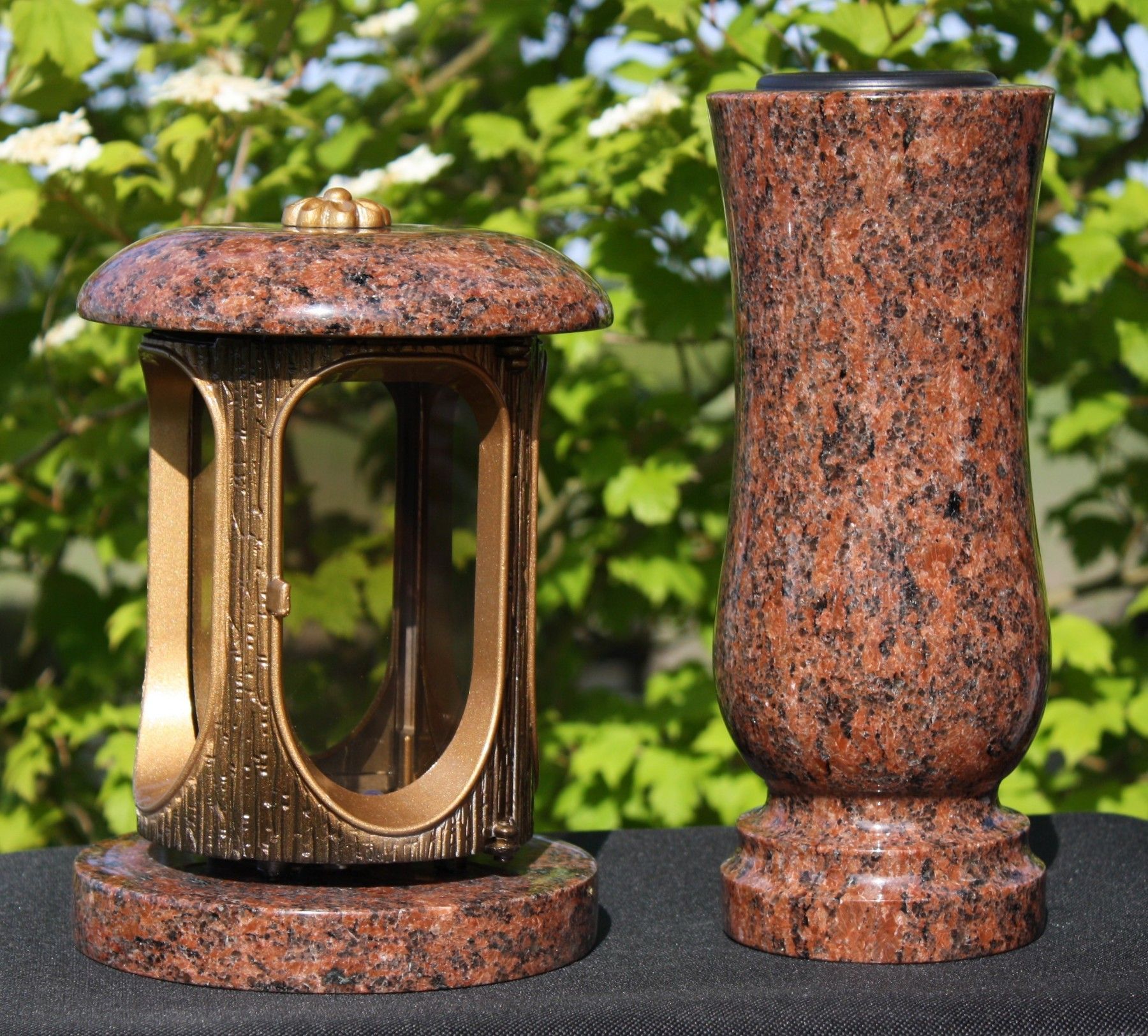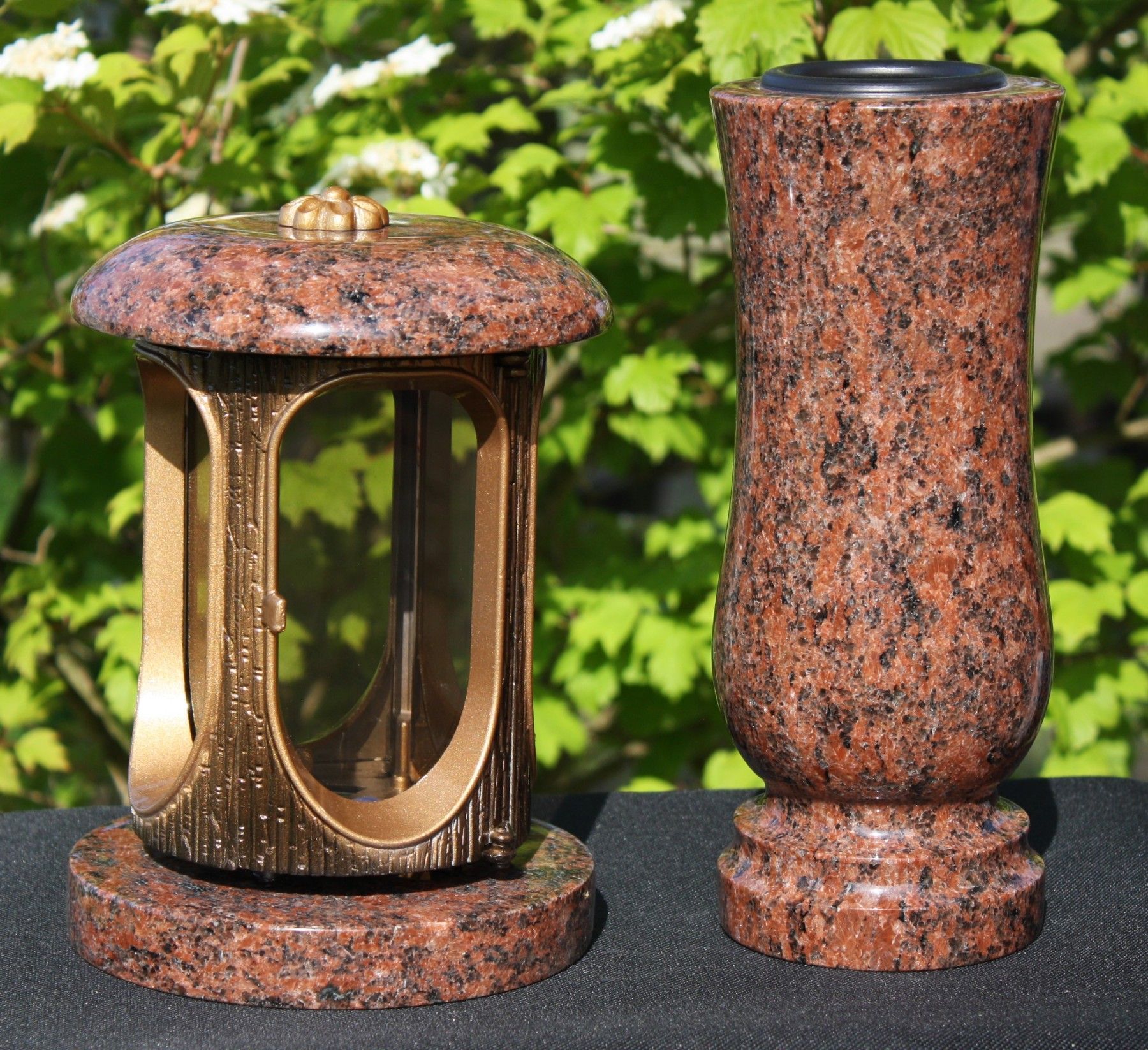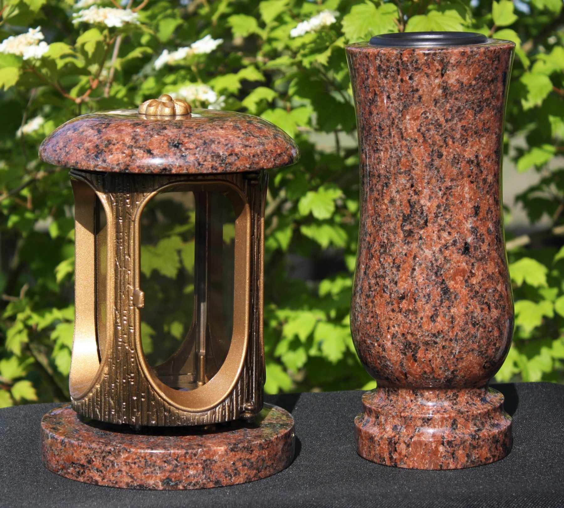 Grablaterne mit Vase aus Granit Vanga Grablicht Grabschmuck