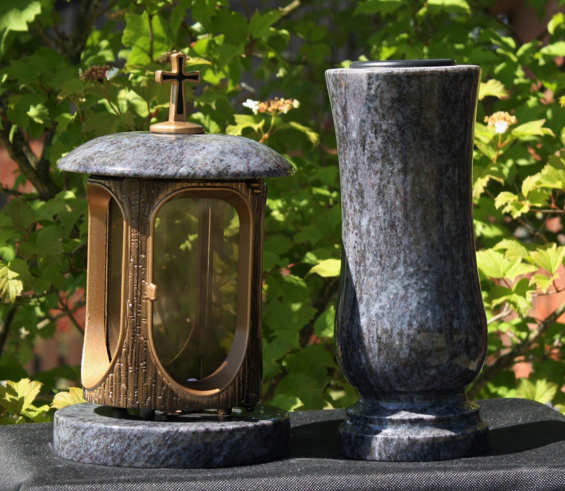 Grablaterne mit Vase aus hellem Orion-Granit Grab-Lampe Grabschmuck Friedhoflaterne