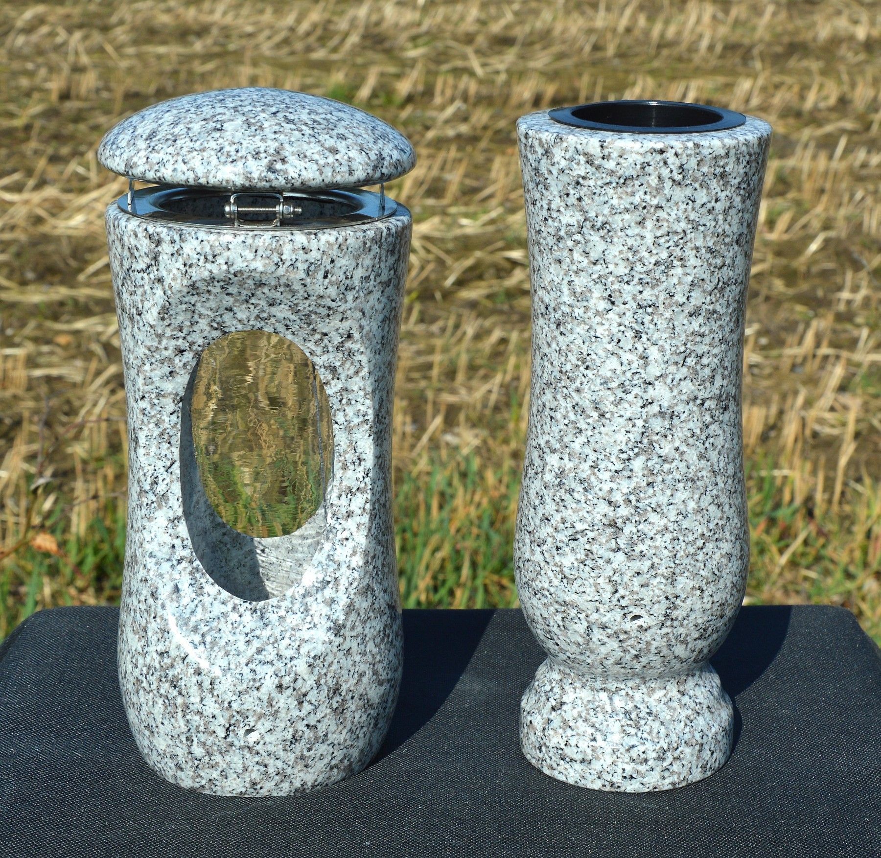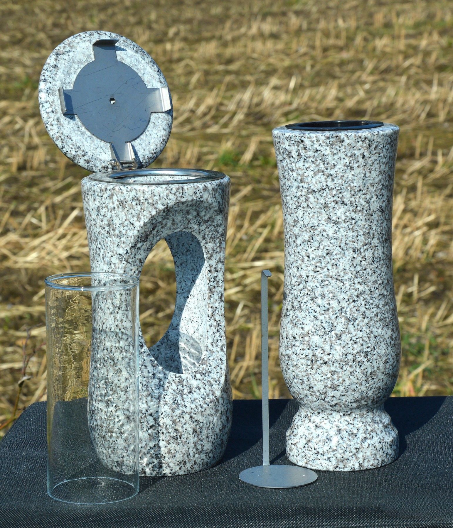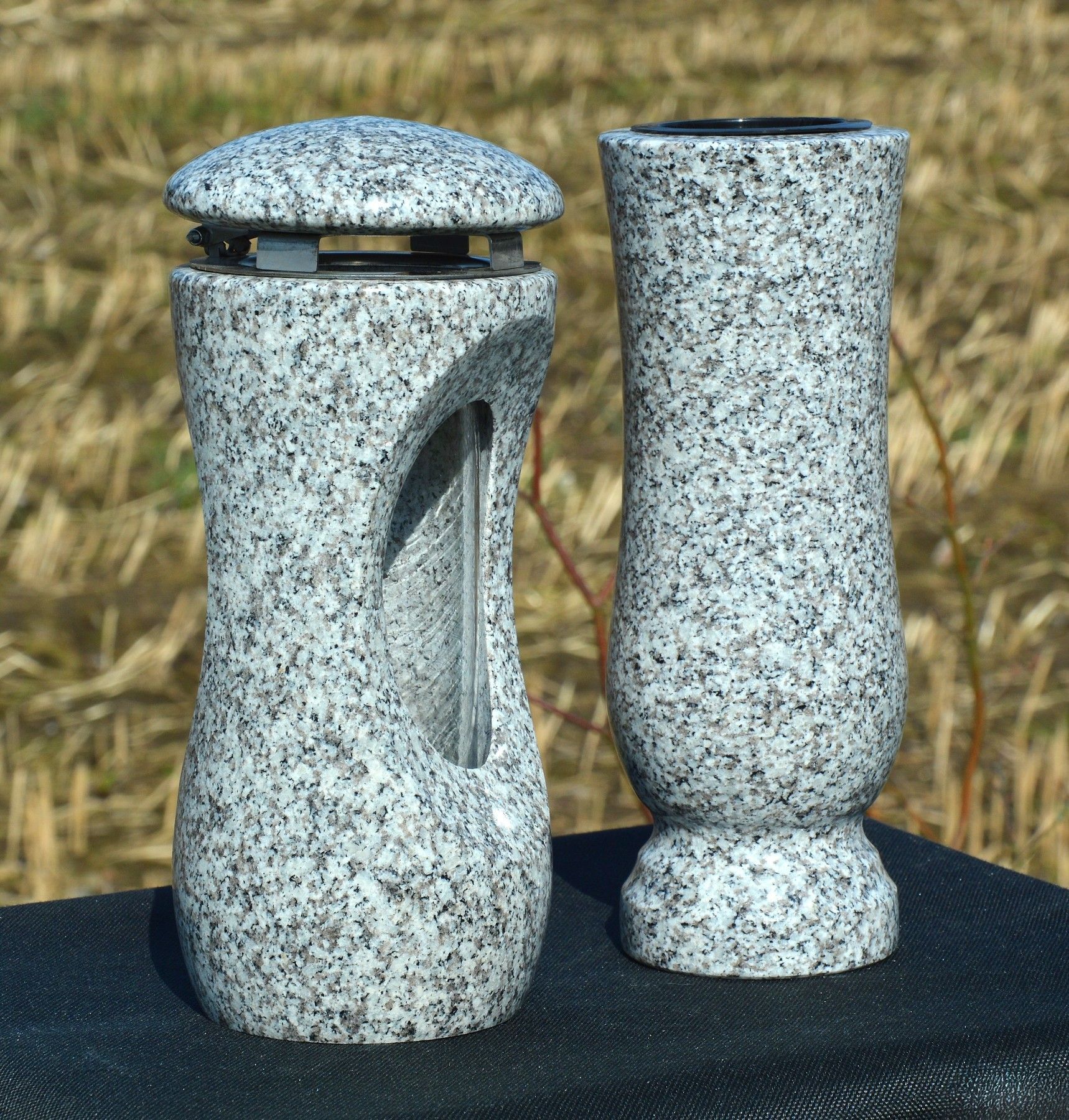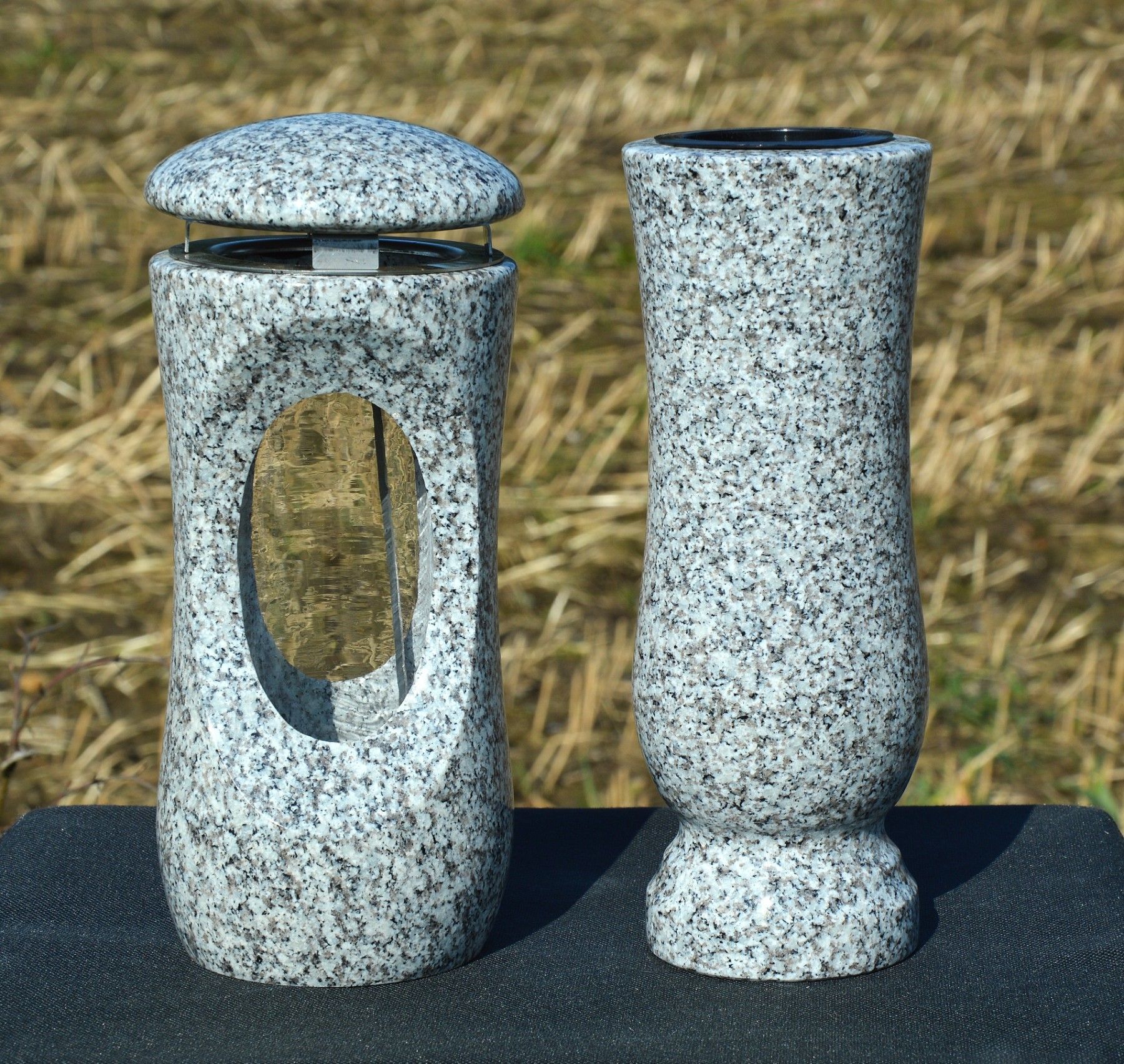 Grablaterne mit Vase Grablicht Grableuchte Grabschmuck aus Strelin Granit