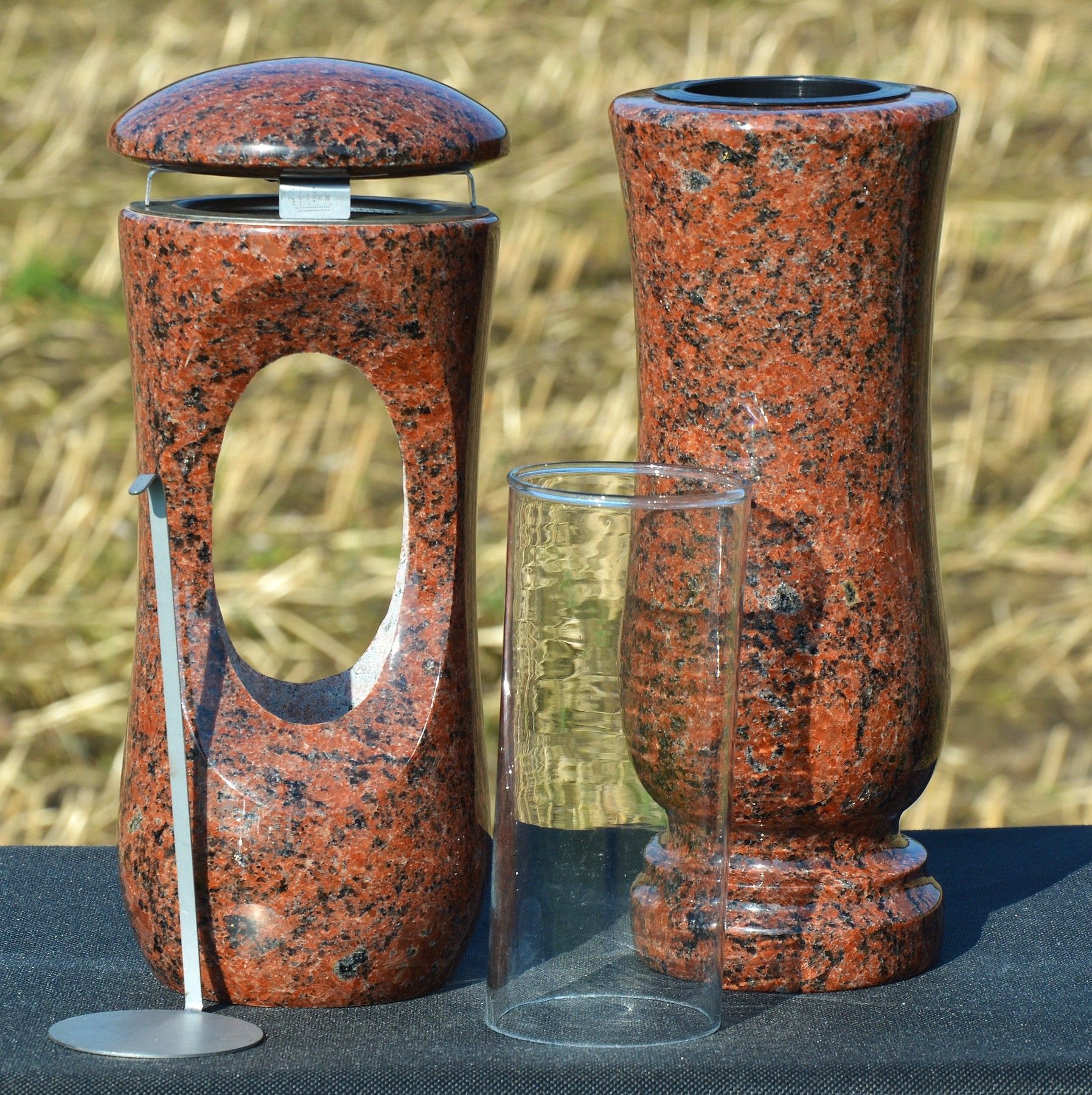 Grablaterne und Vase Unsere Grablaterne und Vase bestehen aus echtem Granit, der auf Hochglanz poliert wurde. Es ist kein Kunststein, Kunststoff oder Harz. So bleibt der schöne Glanz über viele Jahre erhalten. Da wir an die Entwässerung gedacht haben, so kann die Laterne Vase auch im Winter draußen