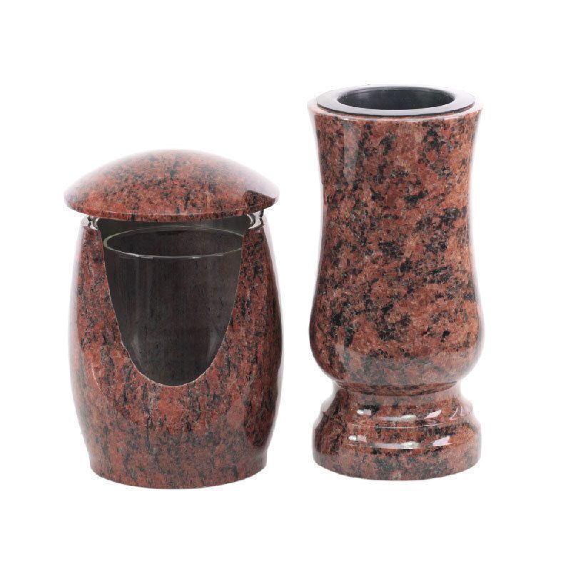 Grablaterne und Vase im Set Grablampe modern Grabvase aus Granit Vanga