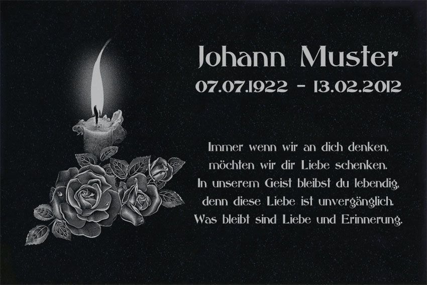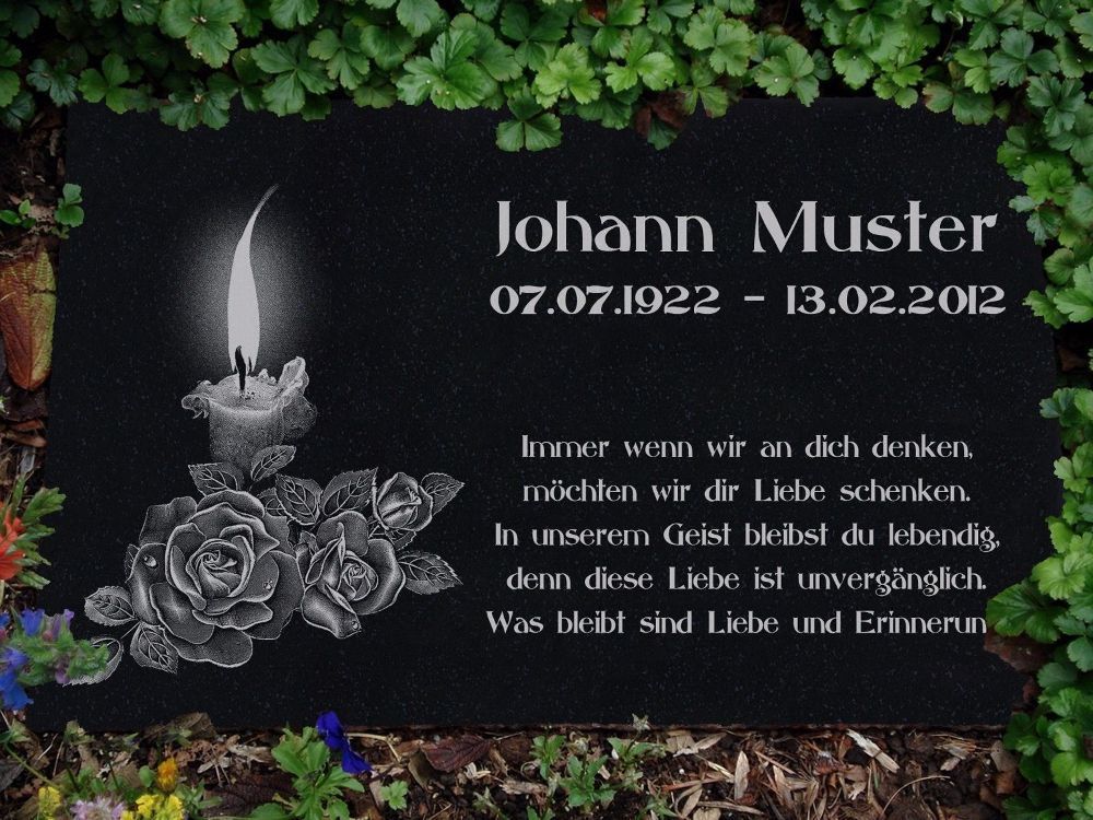 Grabplatte Grabtafel aus GRANIT 60x30 cm Wunsch Gravur mit Motiv - Grabstein-g48