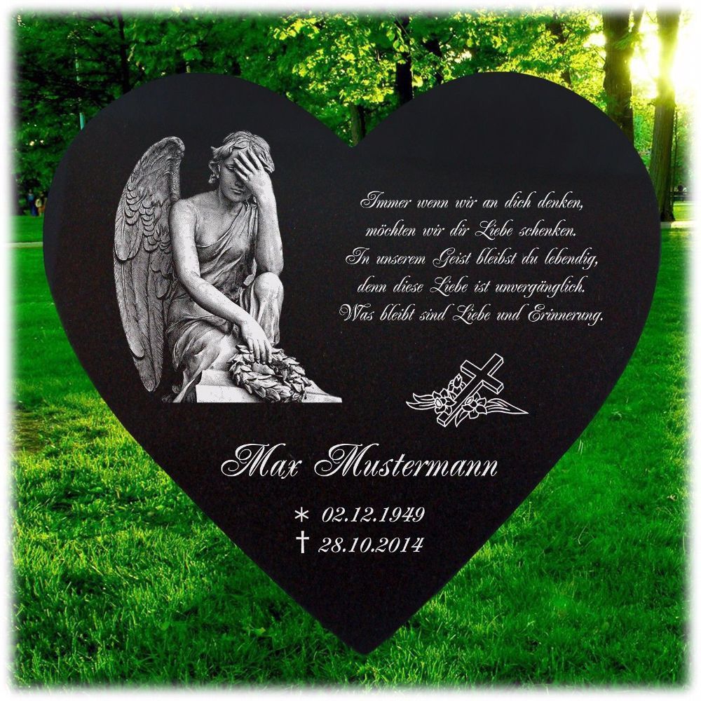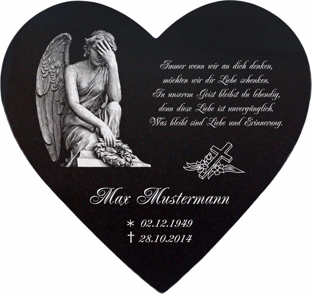 Grabplatte Herz Grabschmuck Granit Wunsch - Gravur 36 x 38 cm - Grabstein-h67