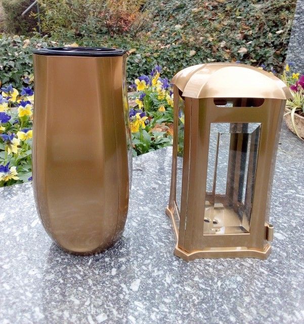 Grabschmuck Set bronzefarben Grablampe / Grabvase Grablaterne Vase Friedhof