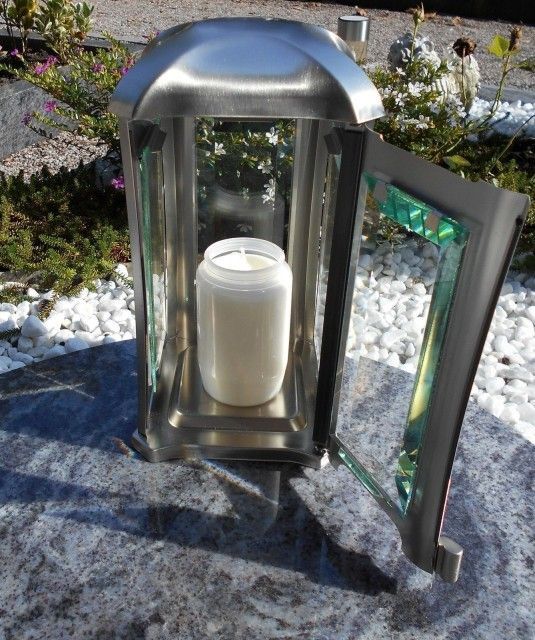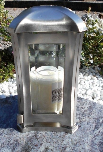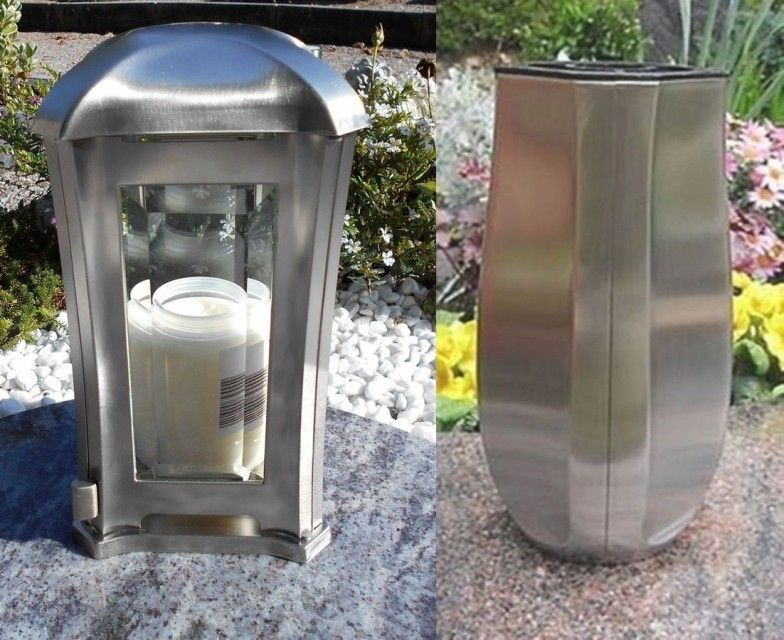 Grabschmuck Set Edelstahl matt Grablampe / Grabvase Grablaterne Edelstahlvase Vase