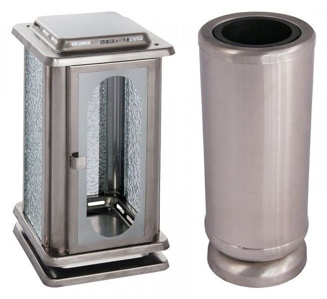 Grabschmuck Set Edelstahl matt Grablampe / Grabvase Grablaterne Grablicht