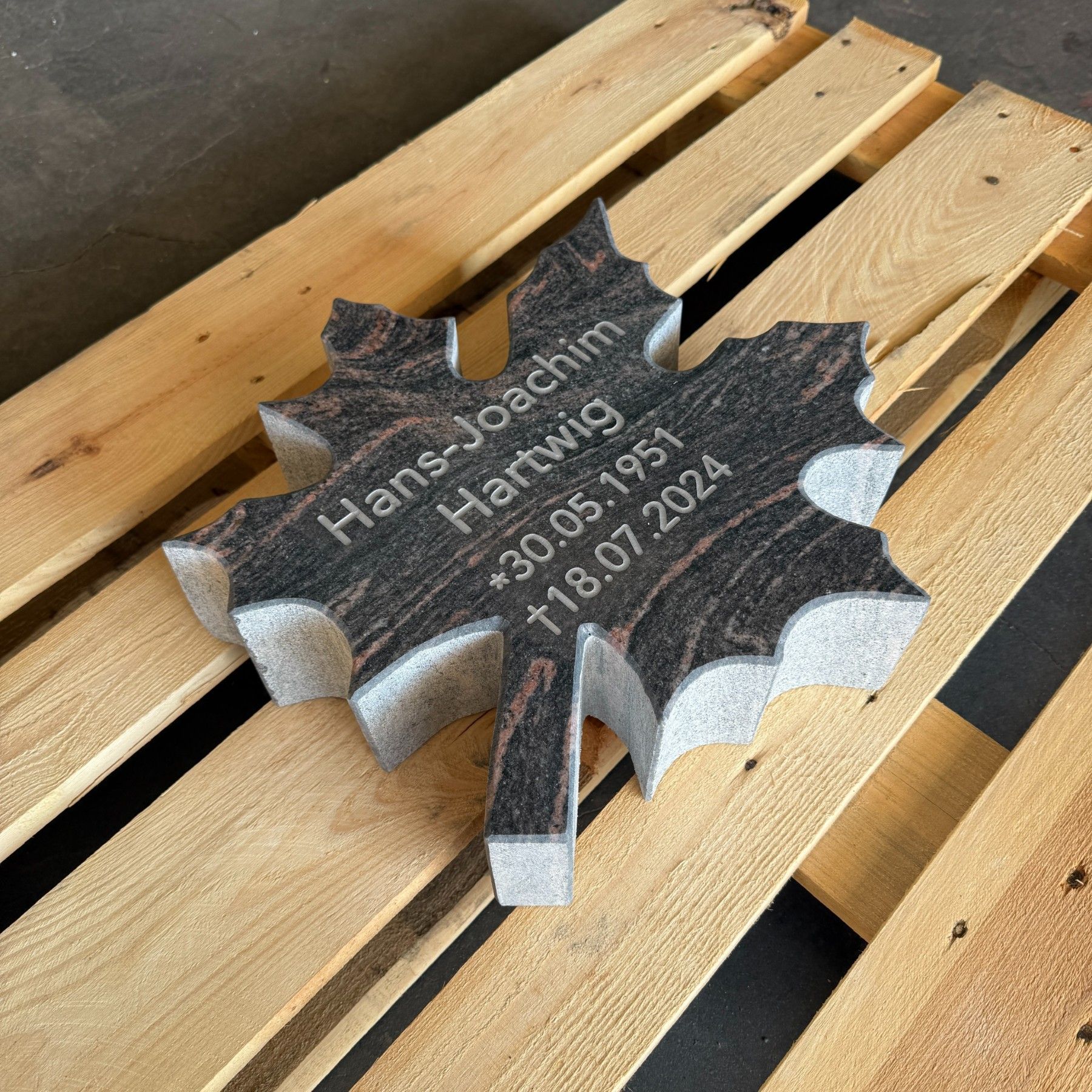 Grabstein Ahornblatt 50x50x10 cm inkl. Gravur & Lieferung, Grabstein für Urnengrab