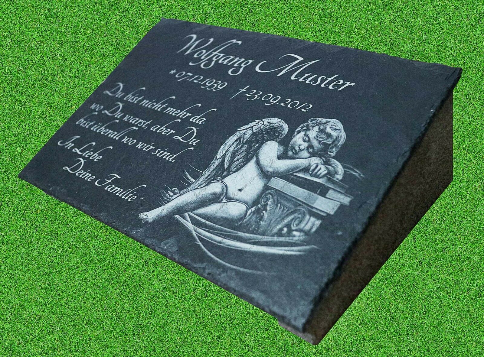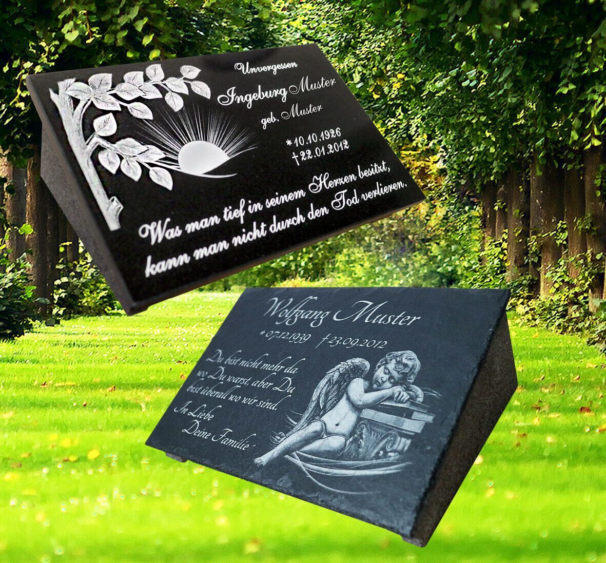 Grabstein Grabplatte ca.20x30 cm mit der Stütze Granit oder Schiefer Motiv Text