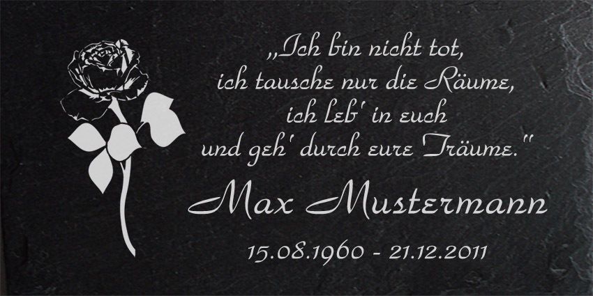 Grabstein, Grabplatte, Grabmal für Grabkreuz Rose-502 -Wunsch Gravur - 20x10 cm