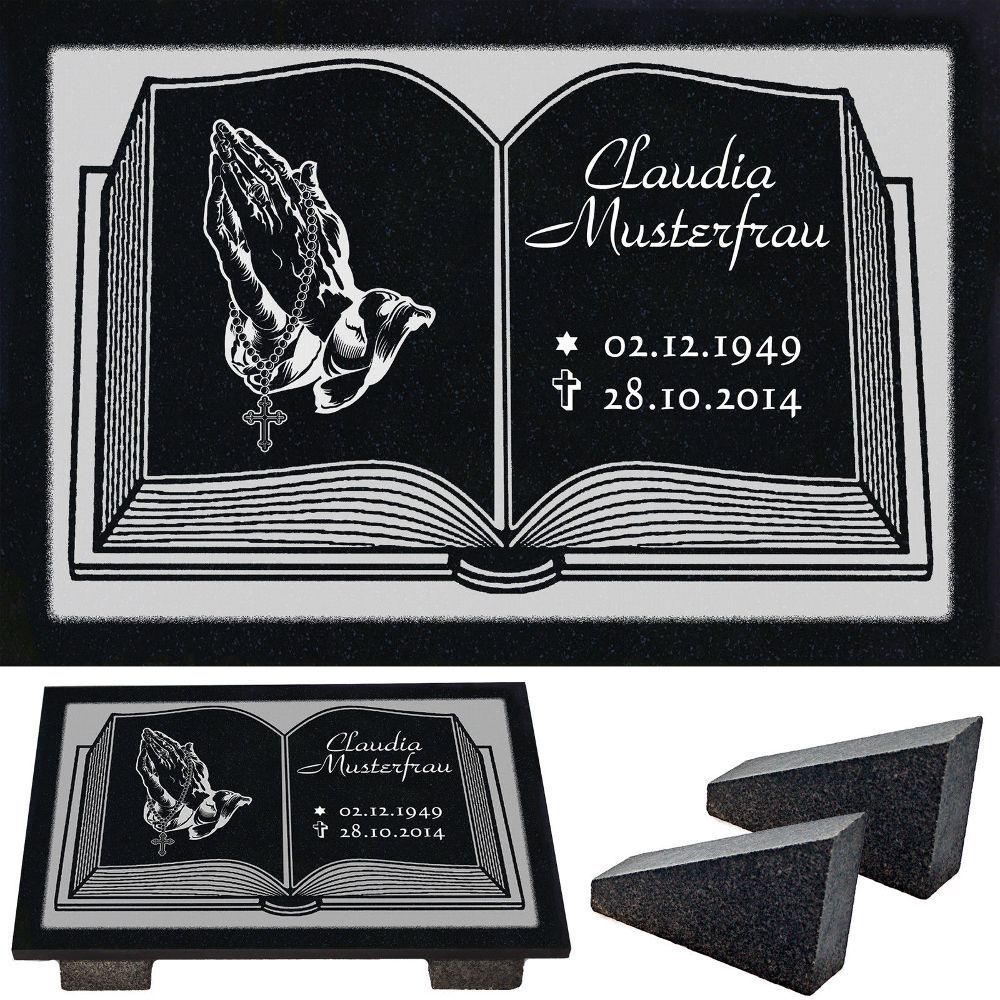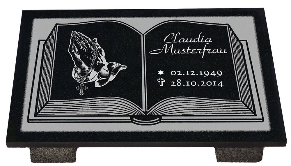 • Grabstein Grabplatte aus Granit Motiv + Inschrift Gravur 30x20 cm - buch-g03