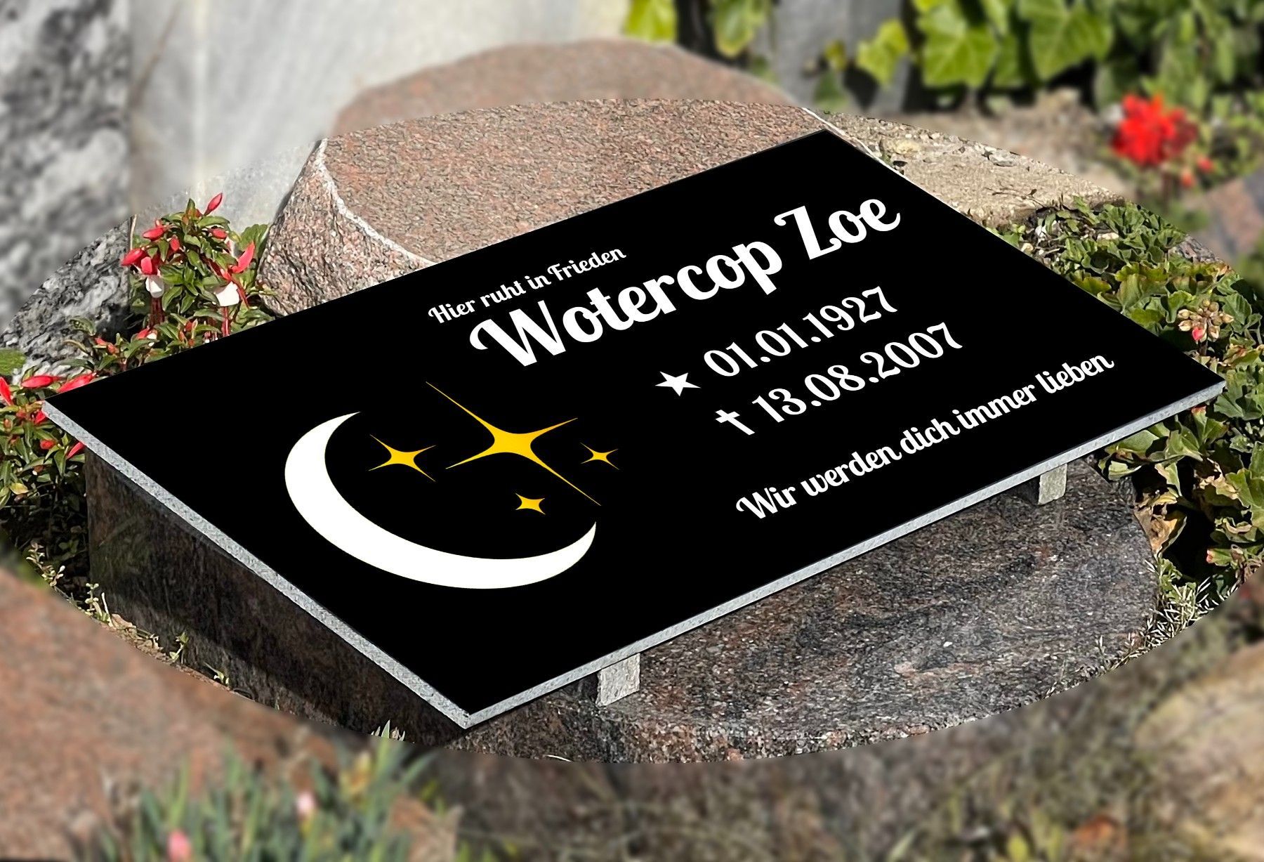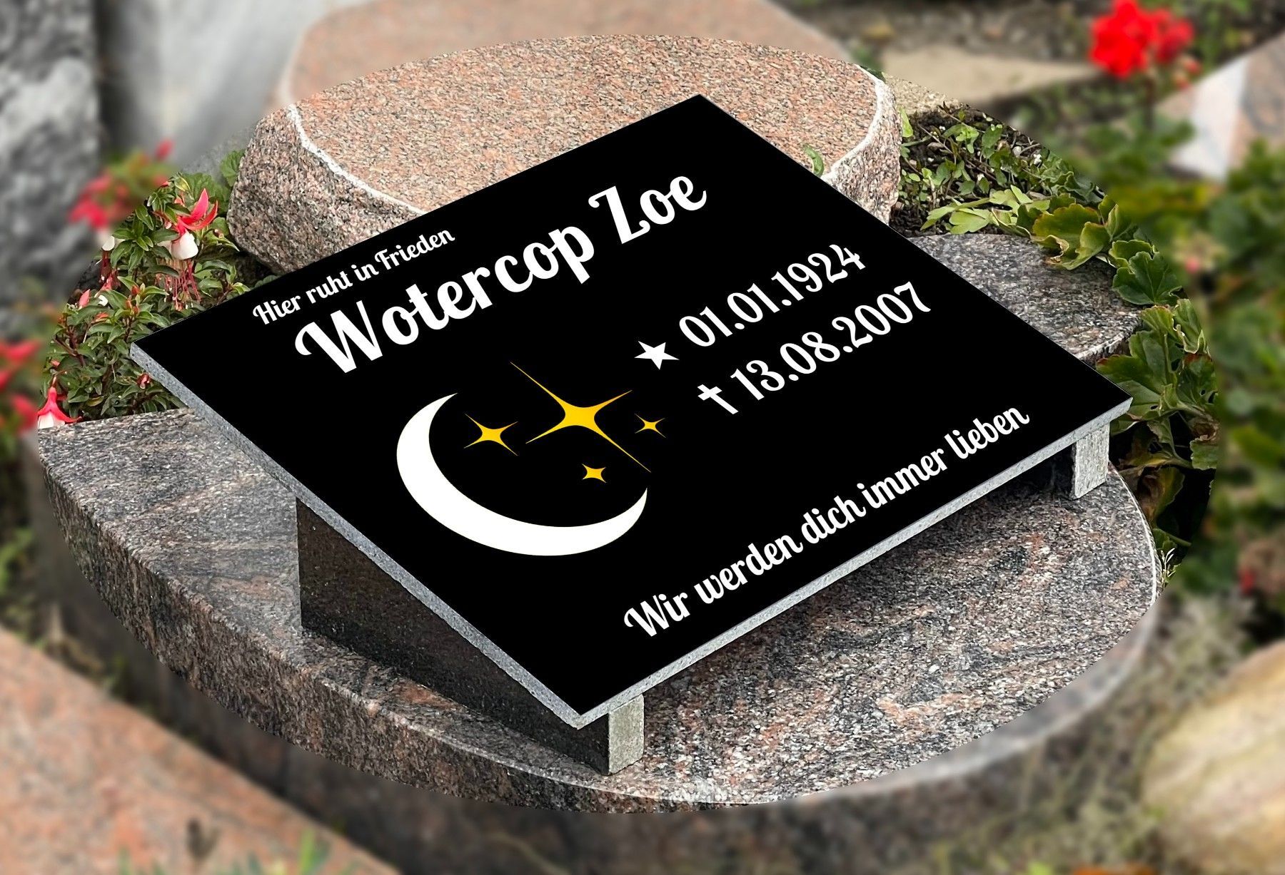 Grabstein mit Inschrift Granit, Grabschmuck, Gedenktafel mit Doppelstützen 30x40cm N5