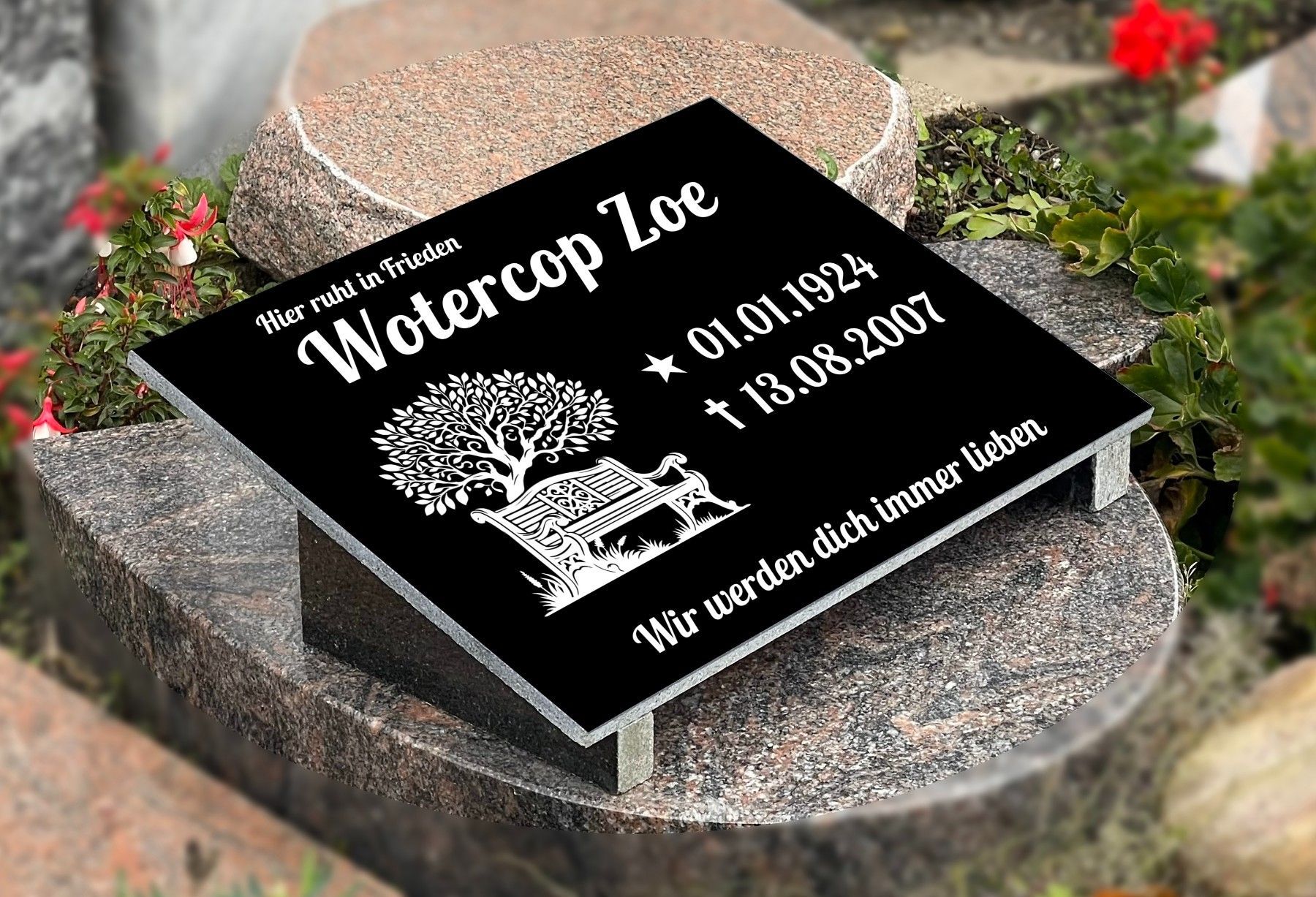 Grabstein mit Inschrift Granit, Grabschmuck, Gedenktafel mit Doppelstützen 30x40cm N6