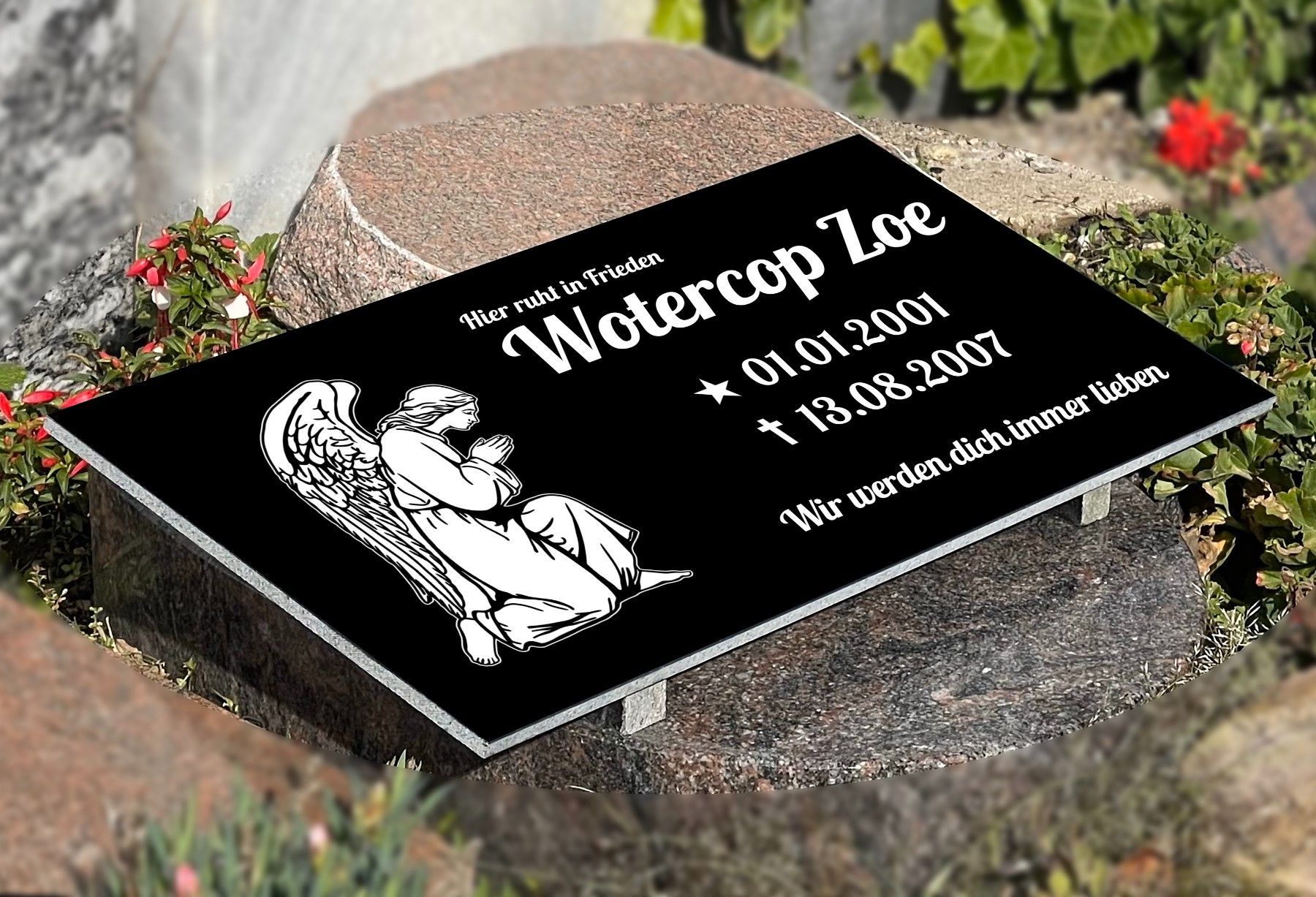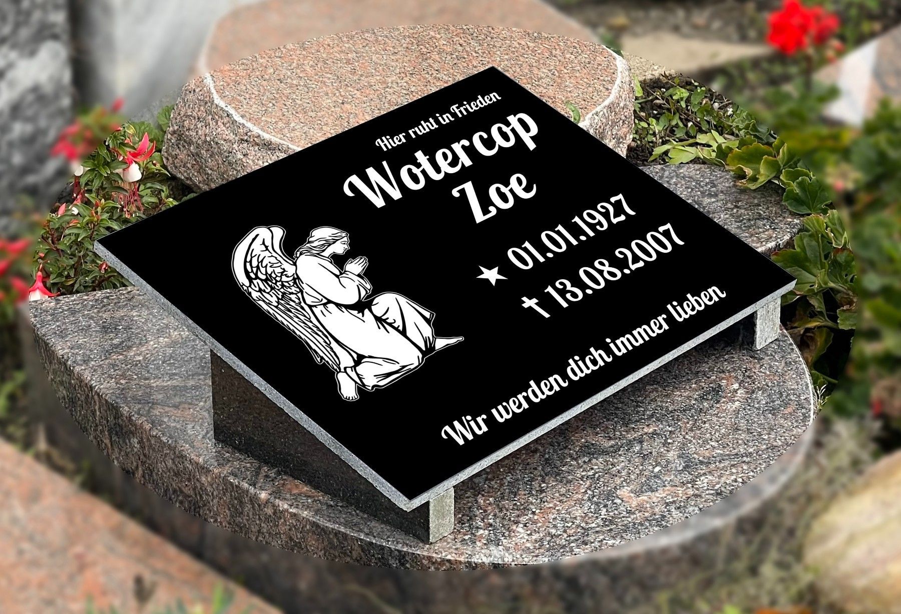 Grabstein mit Inschrift Granit, Grabschmuck, Gedenktafel mit Stützen 30x40cm N10