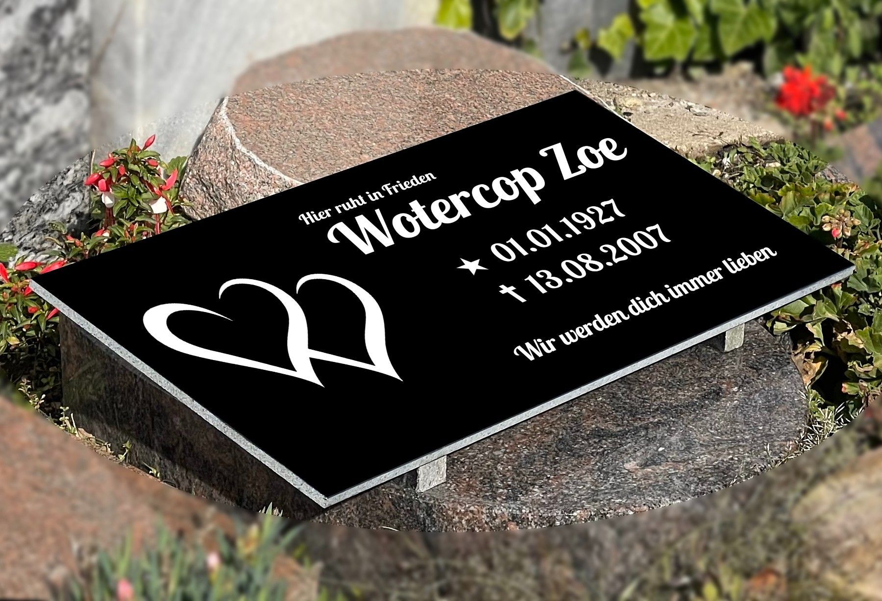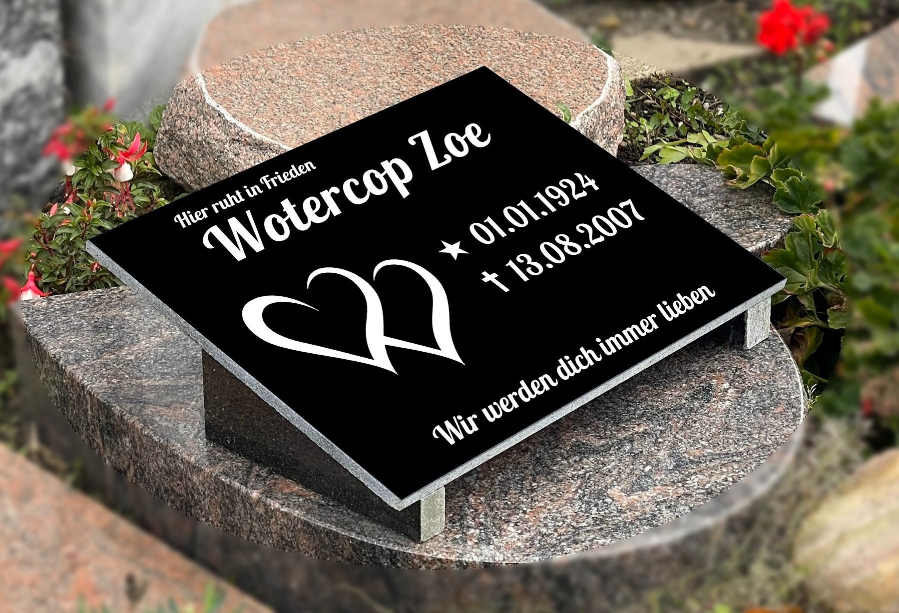 Grabstein mit Inschrift Granit, Grabschmuck, Gedenktafel mit Stützen 30x40cm N14