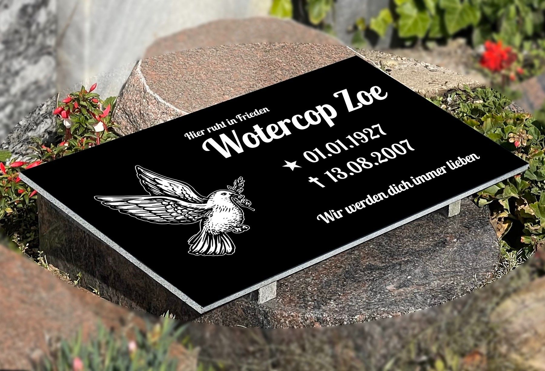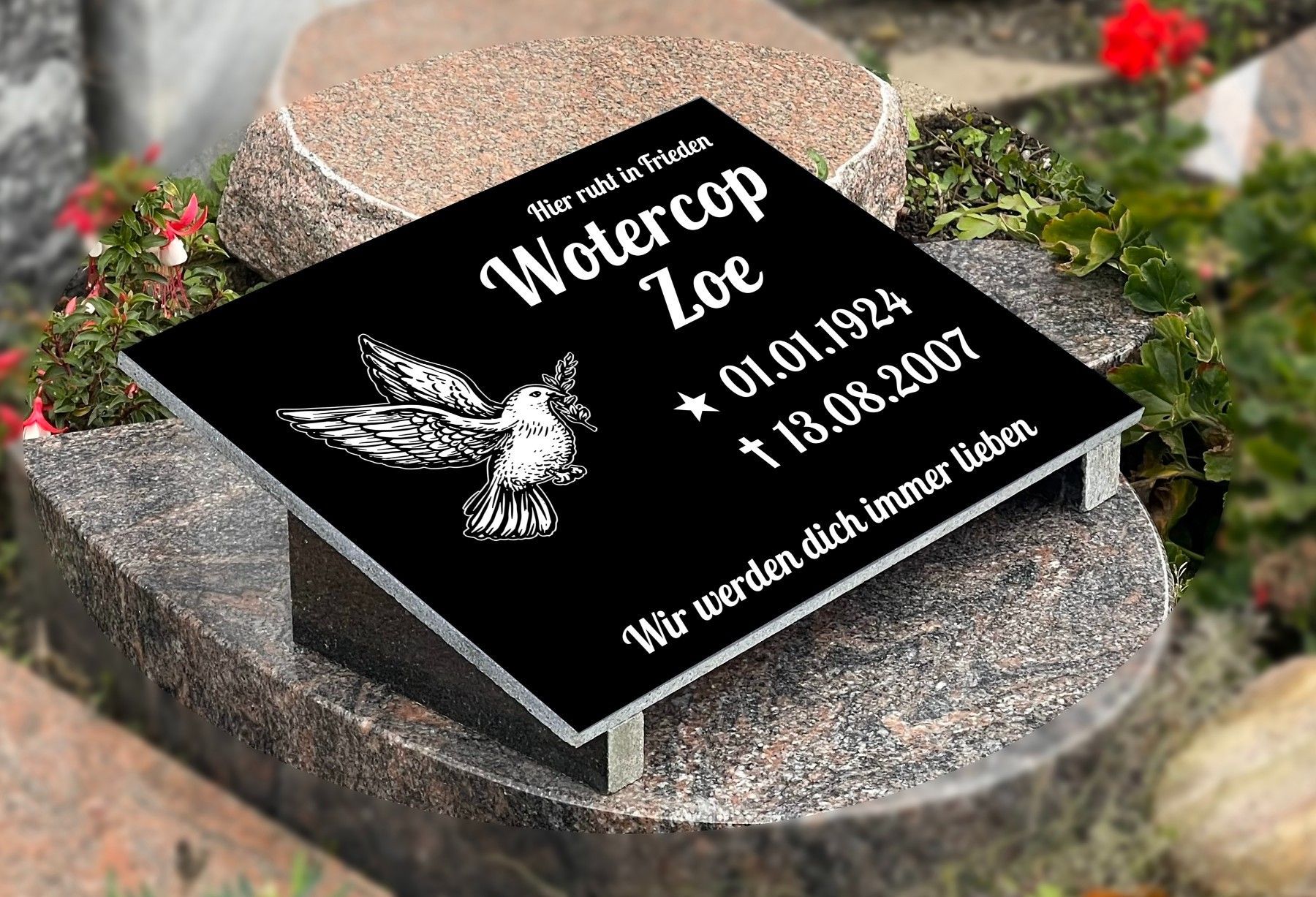 Grabstein mit Inschrift Granit, Grabschmuck, Gedenktafel mit Stützen 30x40cm N17