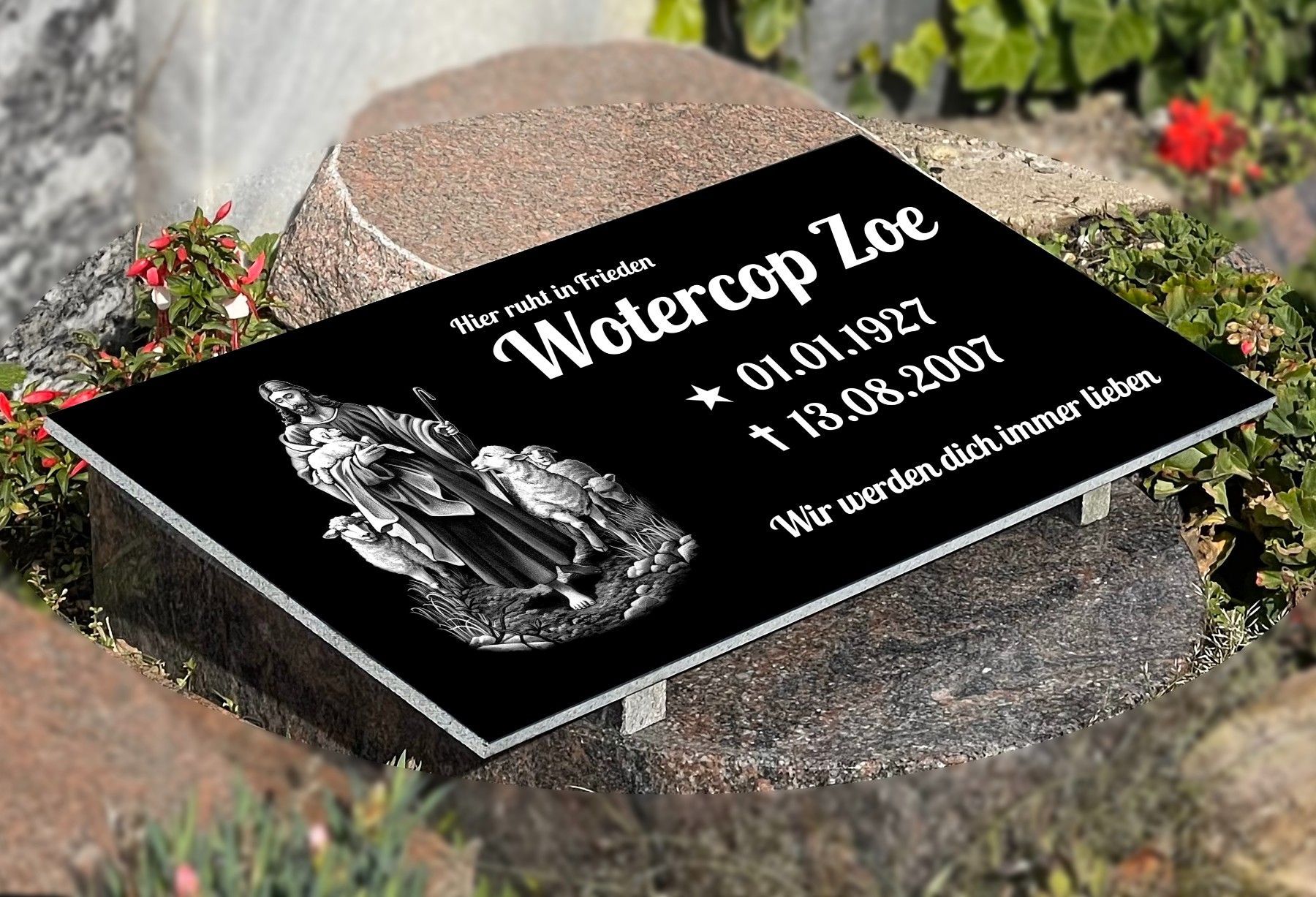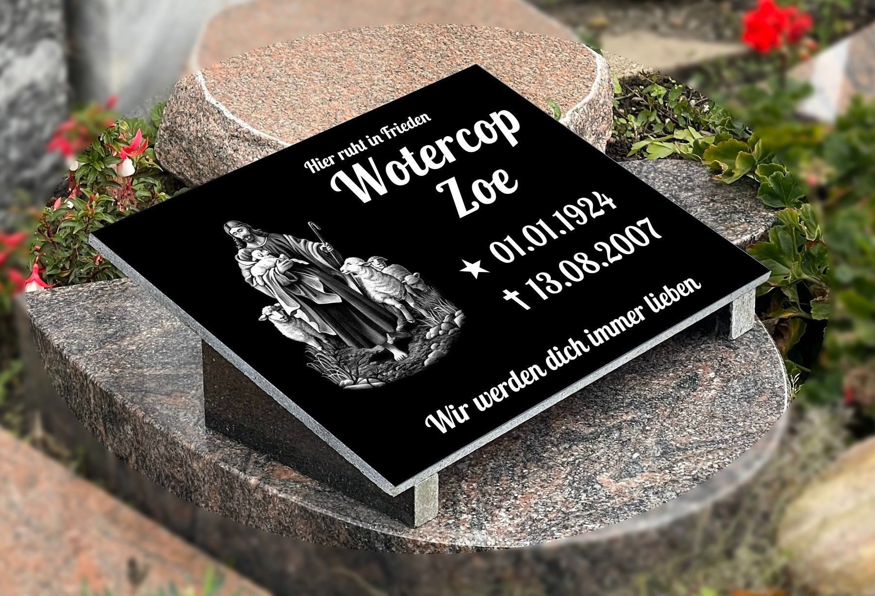 Grabstein mit Inschrift Granit, Grabschmuck, Gedenktafel mit Stützen 30x40cm N27